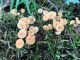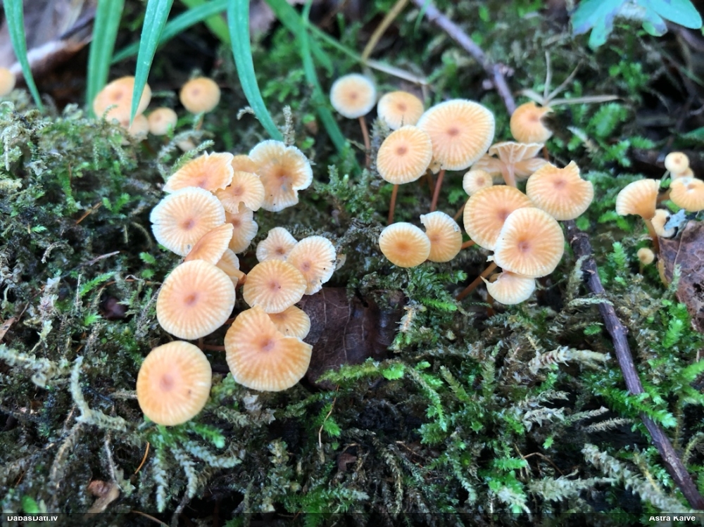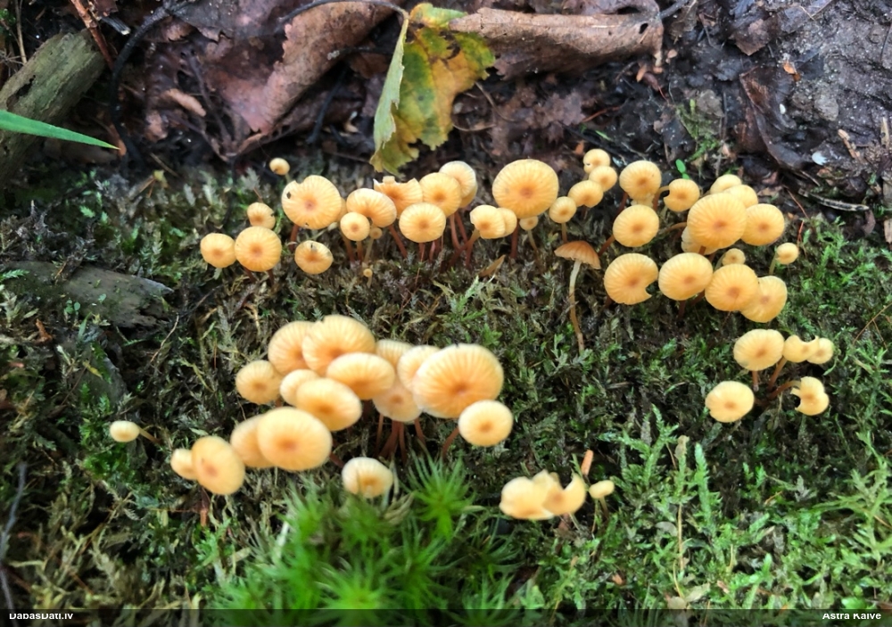 Man pēkšņi radās ideja - vai tur bija nu ļoti mitrs mikroklimats, egle ar melnalksni? Hipotētiski tādas dzeltenas var būt Diachea muscorum. Te bilde ir mazliet līdzīga: https://fr.wikipedia.org/wiki/Fichier:Craterium_muscorum,_Trawscoed,_North_Wales,_Aug_2016_-_Flickr_-_janetgraham84.jpg