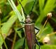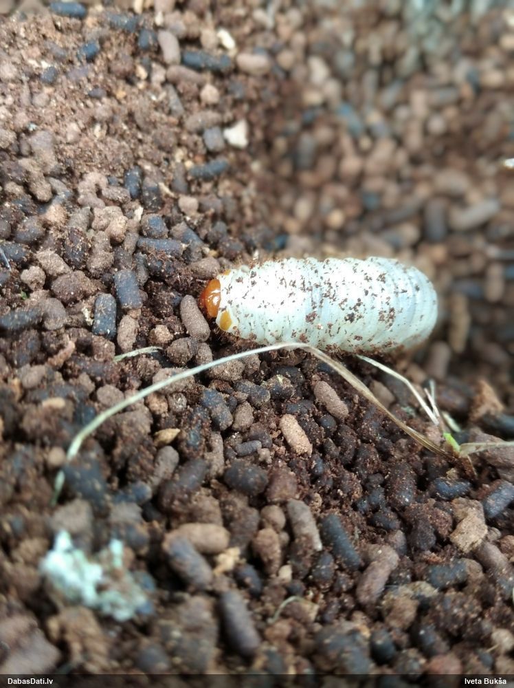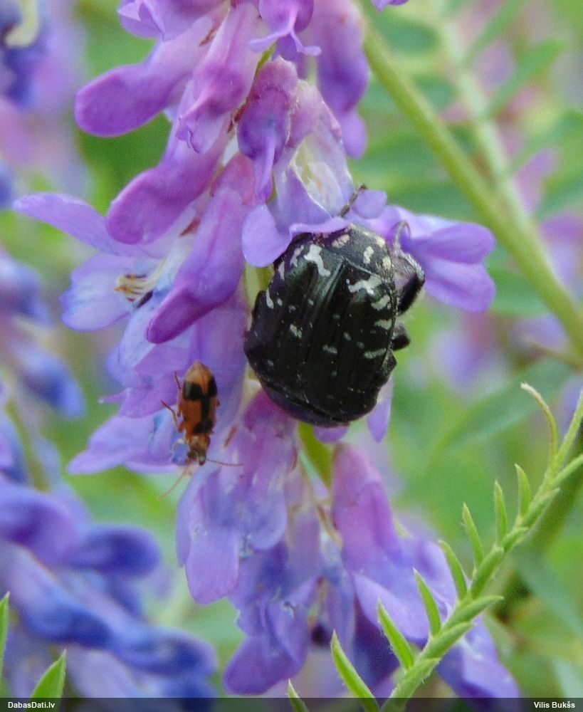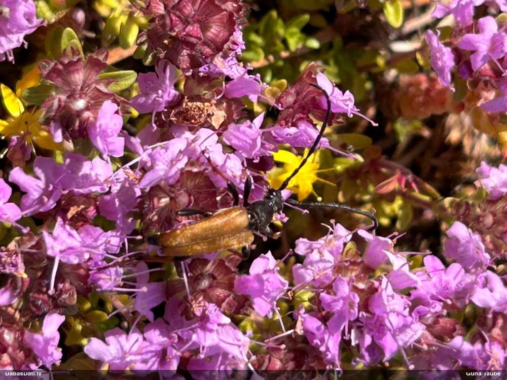 Jāredz tuvāk (kaut vai izkadrēts šis pats attēls) - varbūt tumšā eļļasvabole (Meloe proscarabaeus)