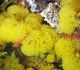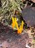 Man pēkšņi radās ideja - vai tur bija nu ļoti mitrs mikroklimats, egle ar melnalksni? Hipotētiski tādas dzeltenas var būt Diachea muscorum. Te bilde ir mazliet līdzīga: https://fr.wikipedia.org/wiki/Fichier:Craterium_muscorum,_Trawscoed,_North_Wales,_Aug_2016_-_Flickr_-_janetgraham84.jpg