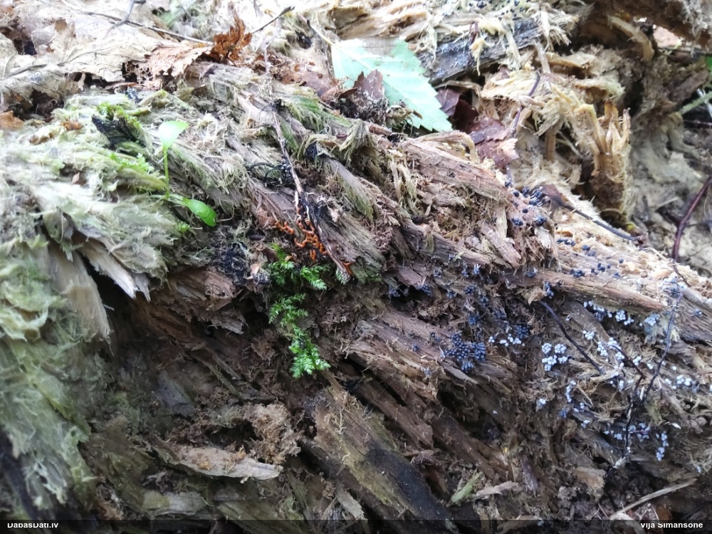 Šobrīd divas versijas - Physarum psittacinum un P.braunianum. Bez paraudziņa te skaidrīzā netiks, bet biotops interesants