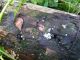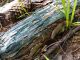 Satrūdējusi kritala mežā, nav dēļi. Iespējams, egle, jauktu koku mežs.