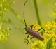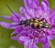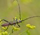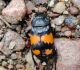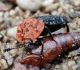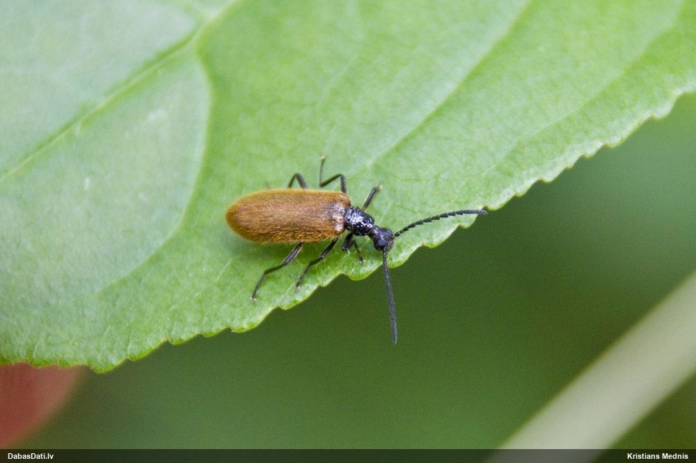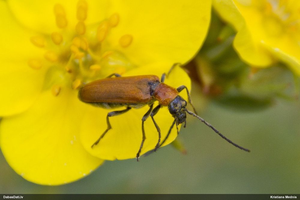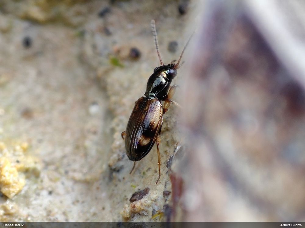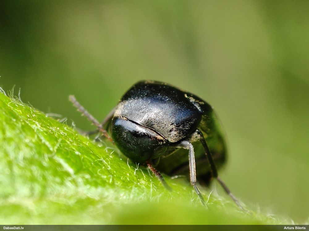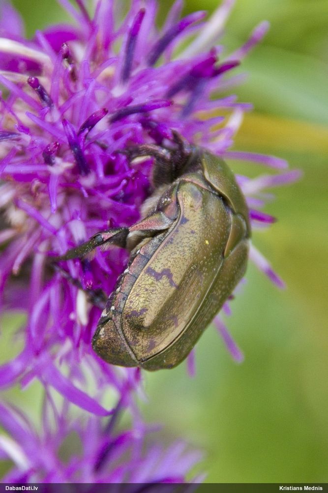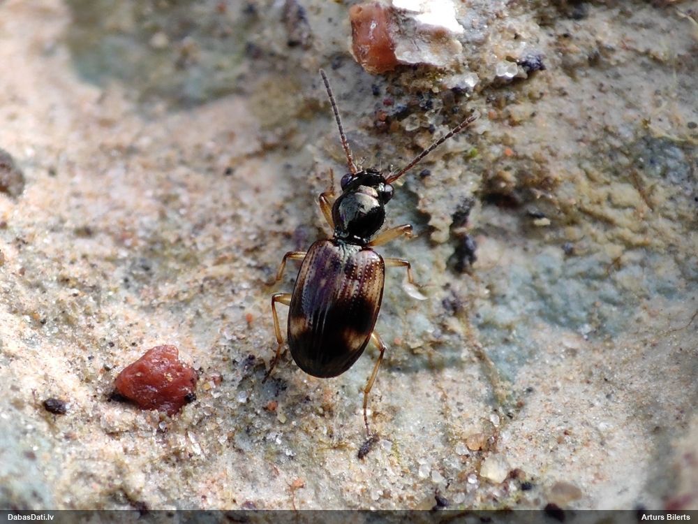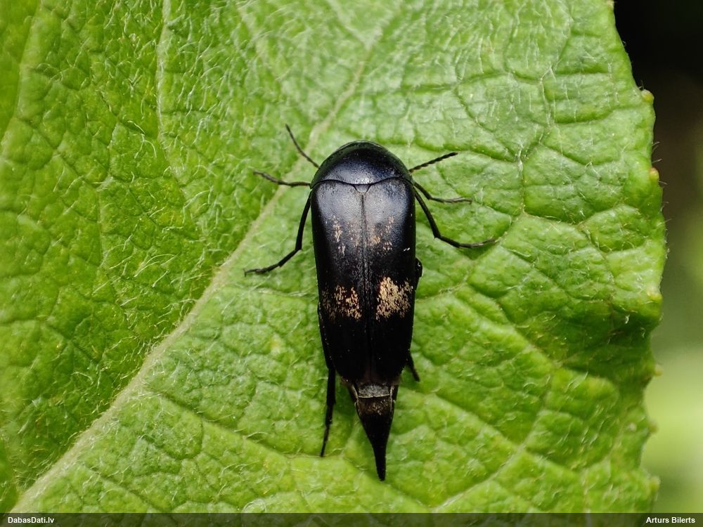 Jāredz tuvāk (kaut vai izkadrēts šis pats attēls) - varbūt tumšā eļļasvabole (Meloe proscarabaeus)