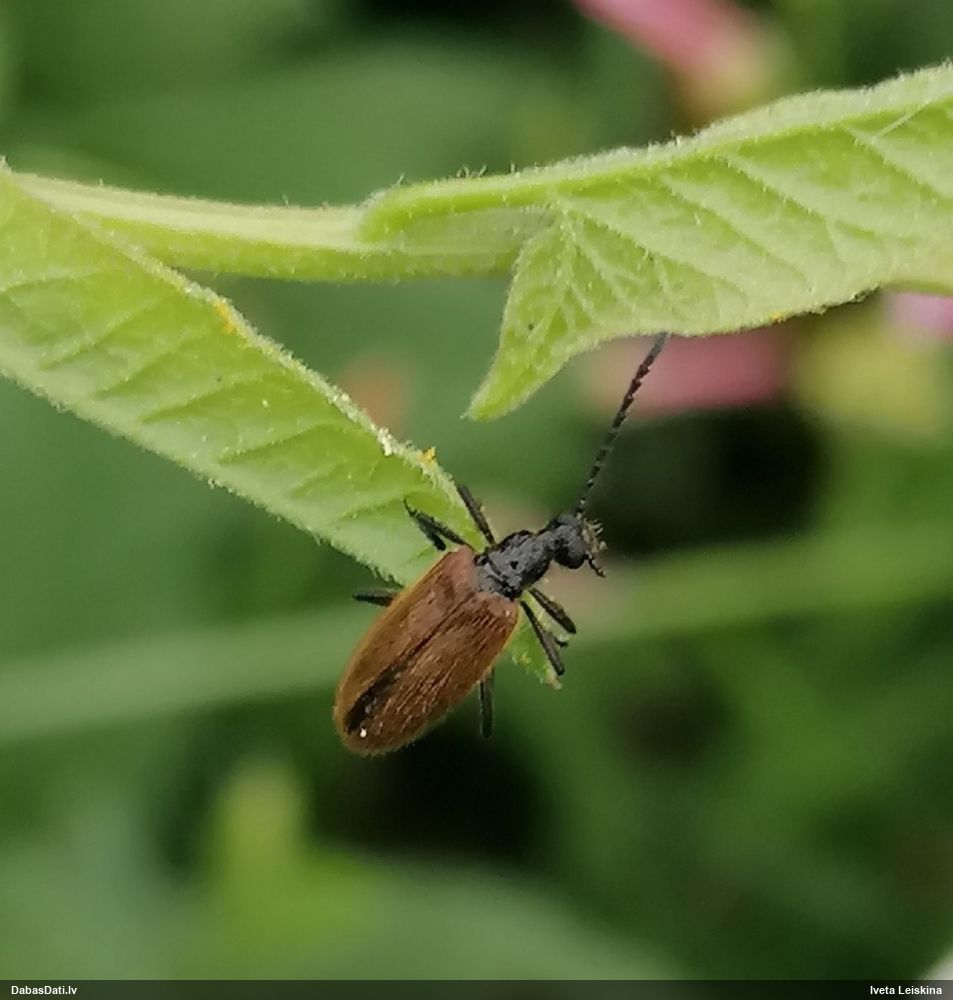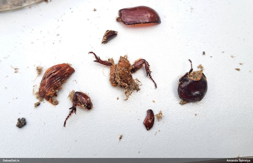 Jāredz tuvāk (kaut vai izkadrēts šis pats attēls) - varbūt tumšā eļļasvabole (Meloe proscarabaeus)