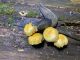 Man pēkšņi radās ideja - vai tur bija nu ļoti mitrs mikroklimats, egle ar melnalksni? Hipotētiski tādas dzeltenas var būt Diachea muscorum. Te bilde ir mazliet līdzīga: https://fr.wikipedia.org/wiki/Fichier:Craterium_muscorum,_Trawscoed,_North_Wales,_Aug_2016_-_Flickr_-_janetgraham84.jpg