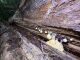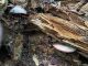 Satrūdējusi kritala mežā, nav dēļi. Iespējams, egle, jauktu koku mežs.