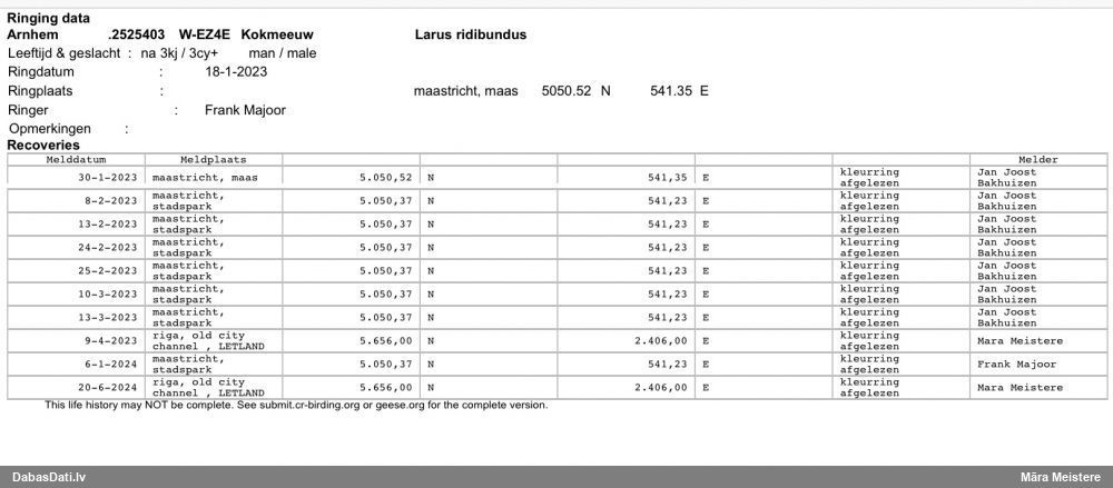 Gredzenošanas datums: 29.01.2024 Gredzenošanas vieta: Konstanz / Bodensee Koordinātas: 47°39'00" N 09°11'00" E
