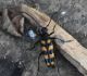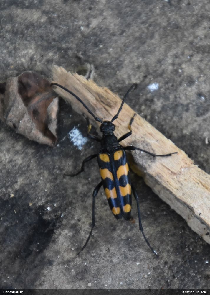 Jāredz tuvāk (kaut vai izkadrēts šis pats attēls) - varbūt tumšā eļļasvabole (Meloe proscarabaeus)