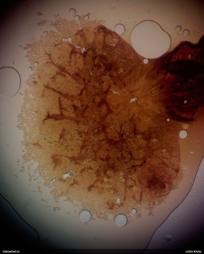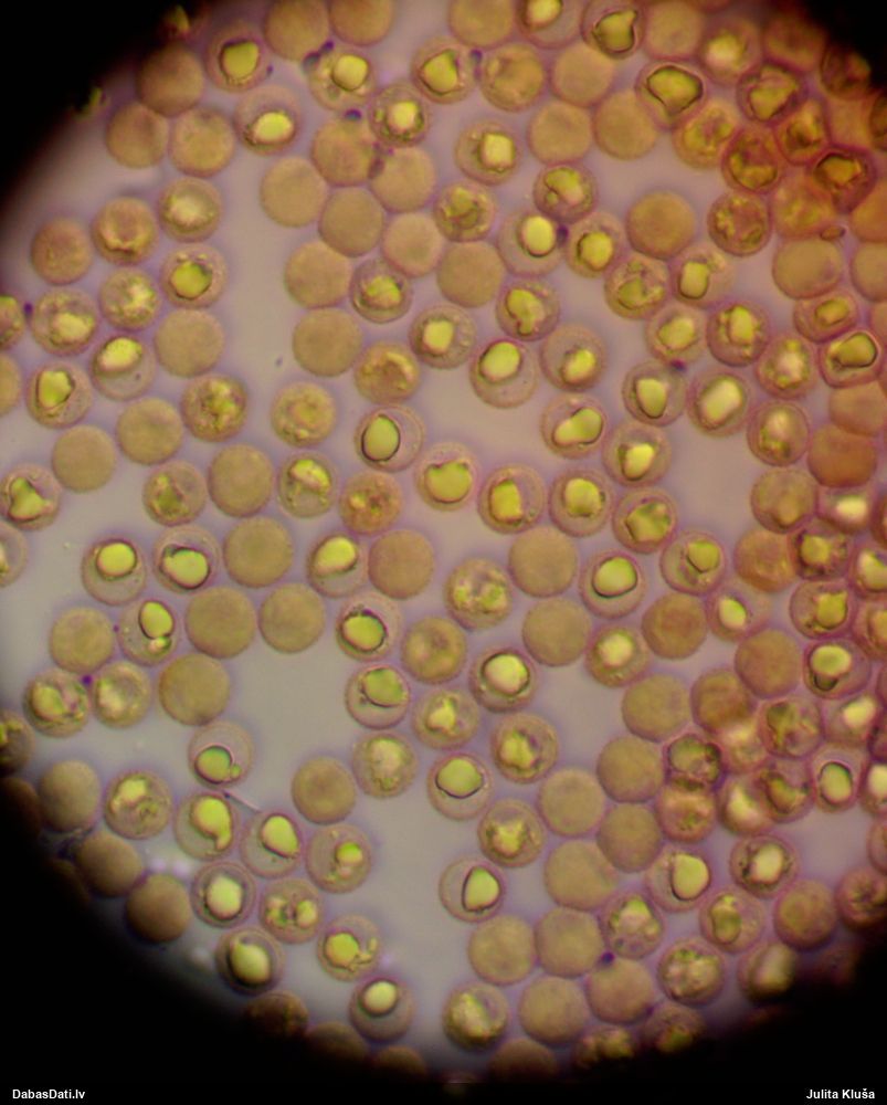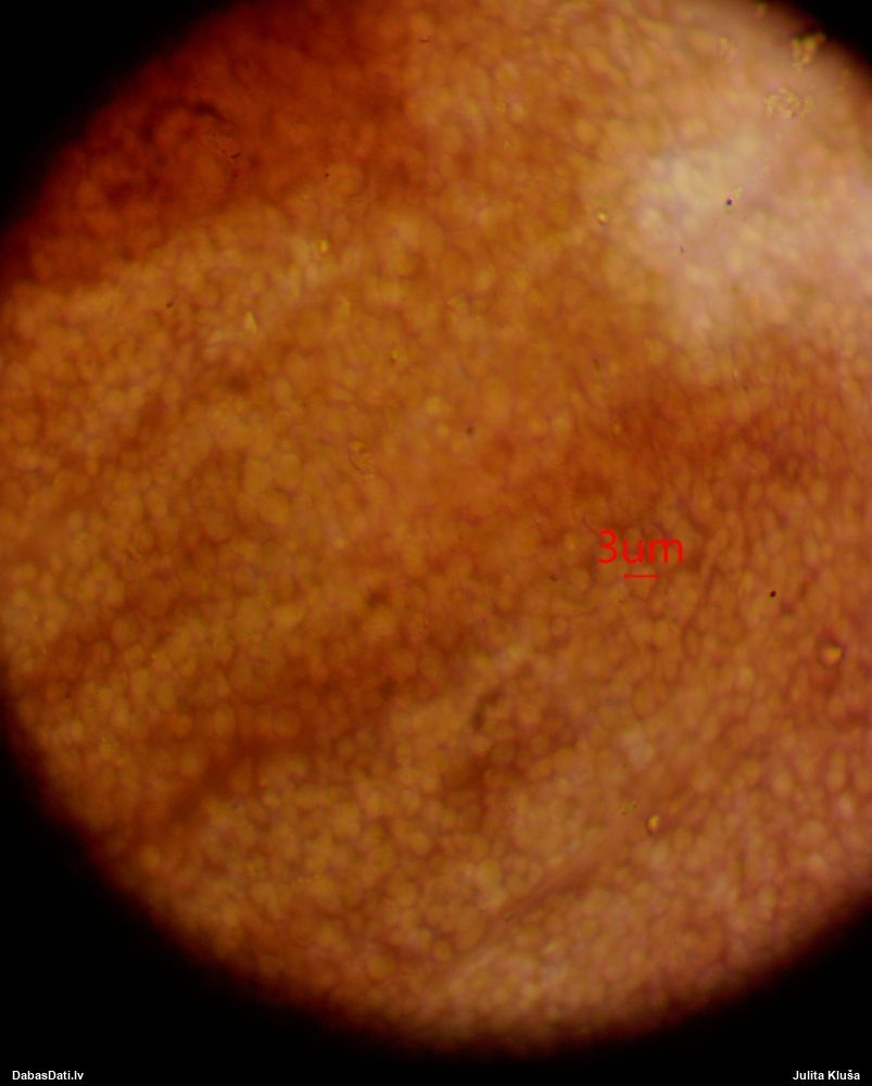 Sporas izskatās ļoti gaišas, varbūt nenobriedušas. Es laikam pēc kāda laiciņa mēģinātu vēlreiz mikroskopēt. Tajā pašā laikā sporu izmēri priekš T.contorta ir pamazi (ja tipiski ir 11-14 mkm, te ir knapi 11 mkm)