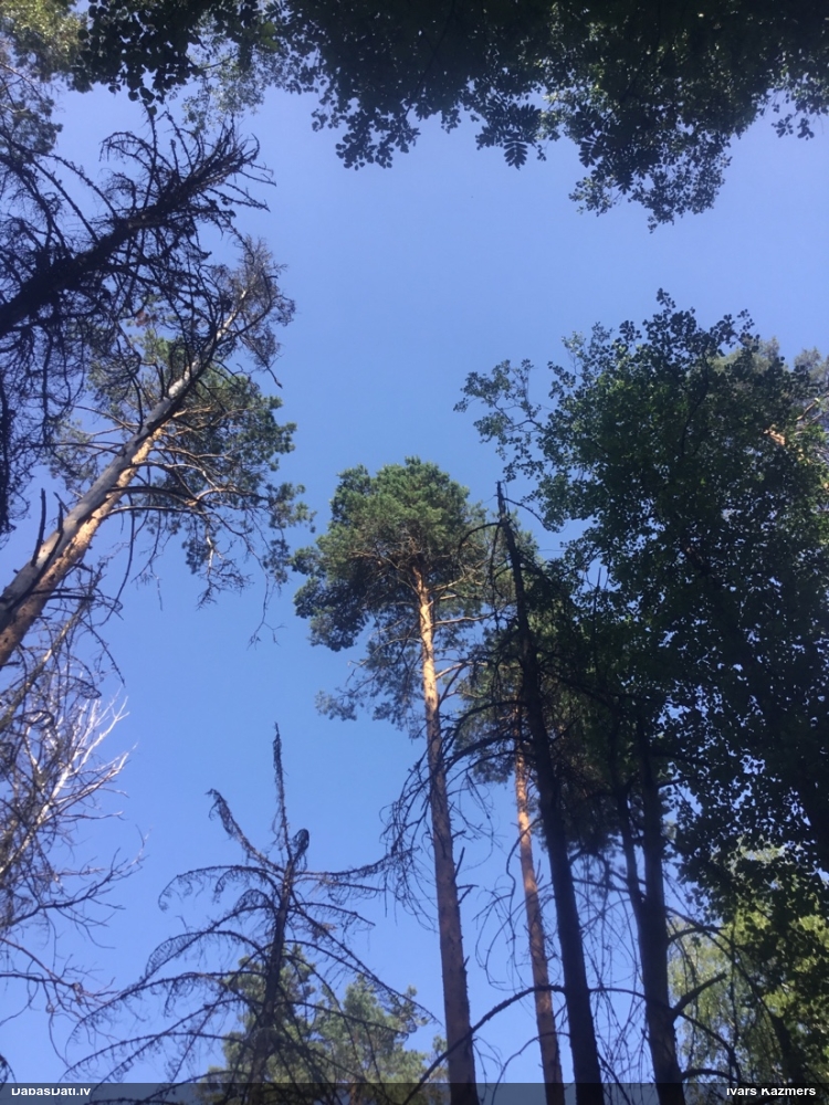 Jā, zem mizas uz nokaltušas priedes.
