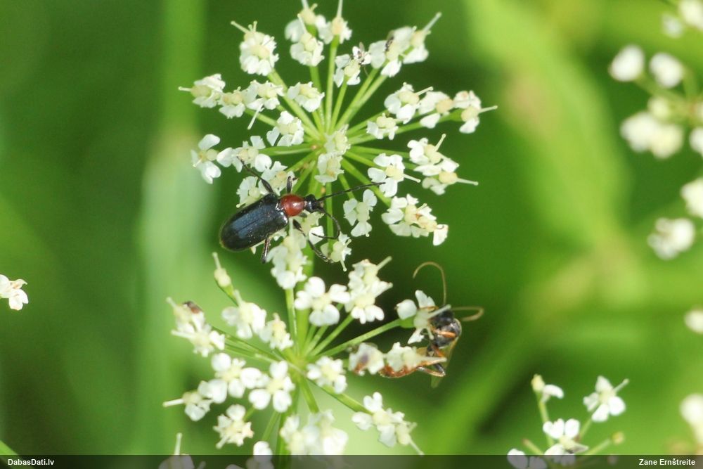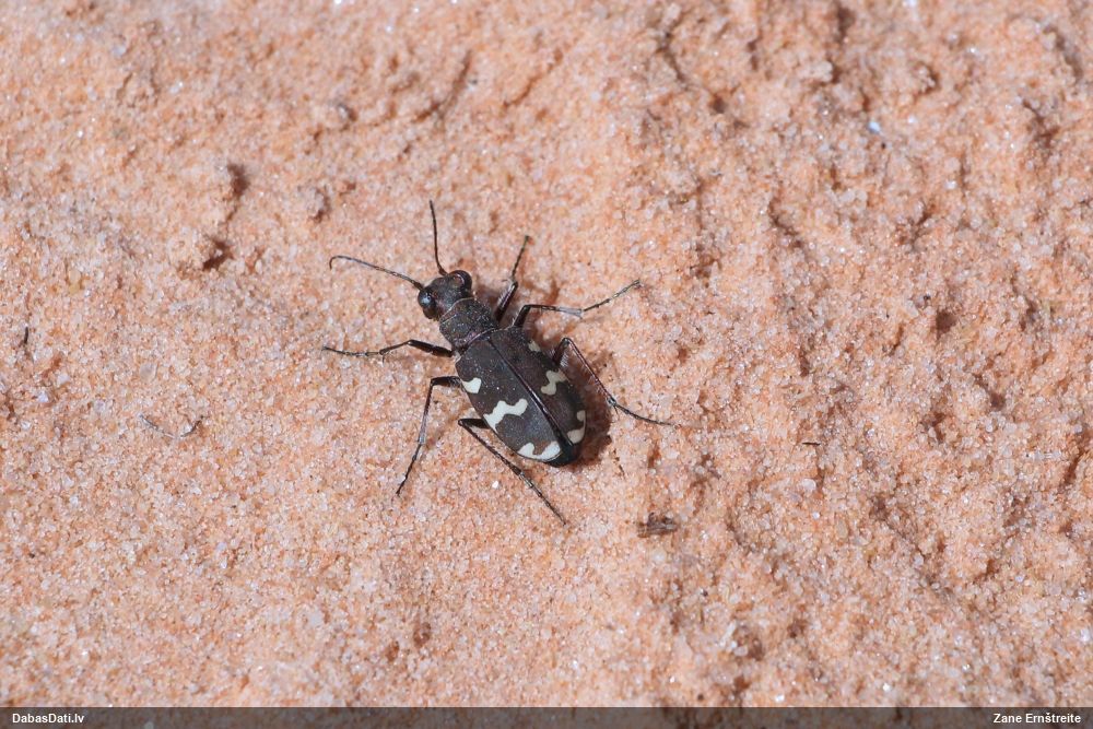 Jāredz tuvāk (kaut vai izkadrēts šis pats attēls) - varbūt tumšā eļļasvabole (Meloe proscarabaeus)