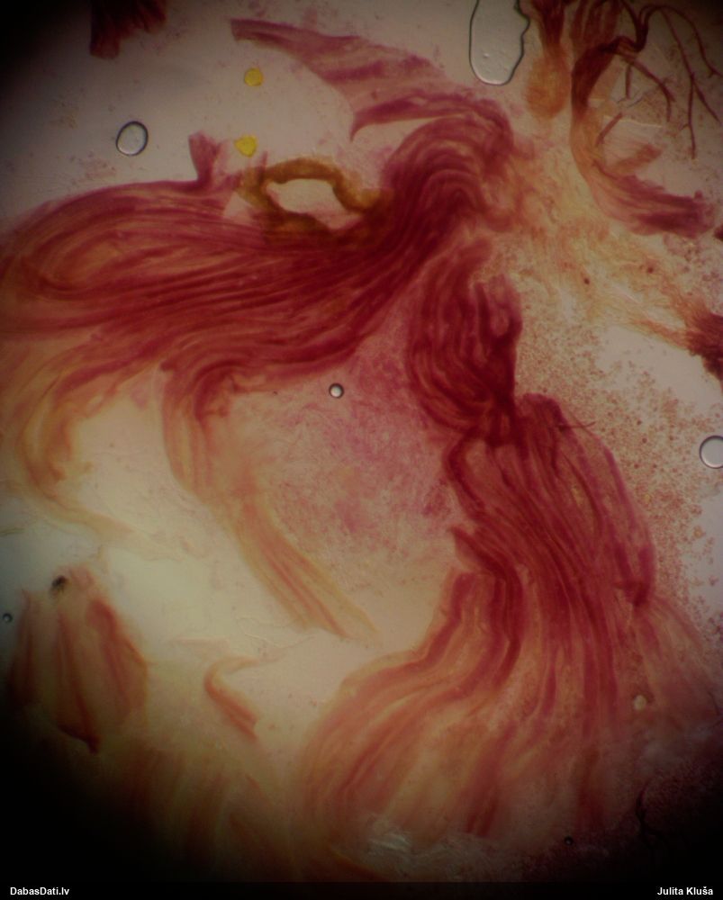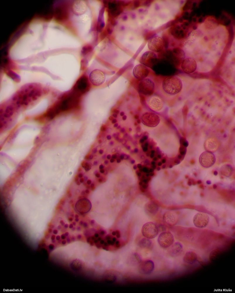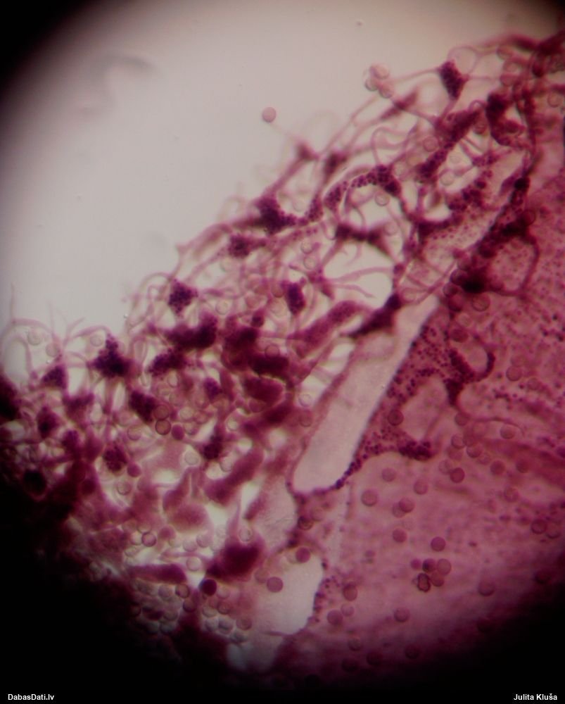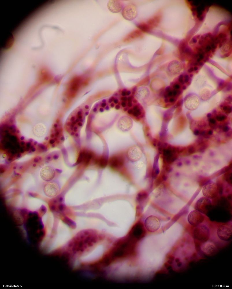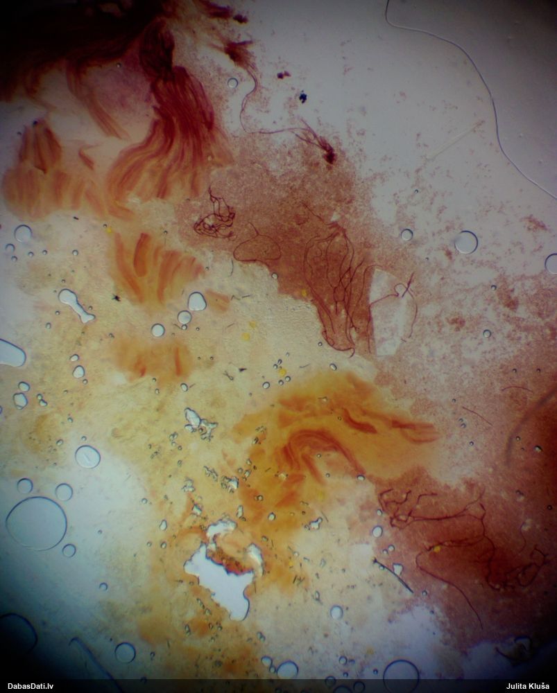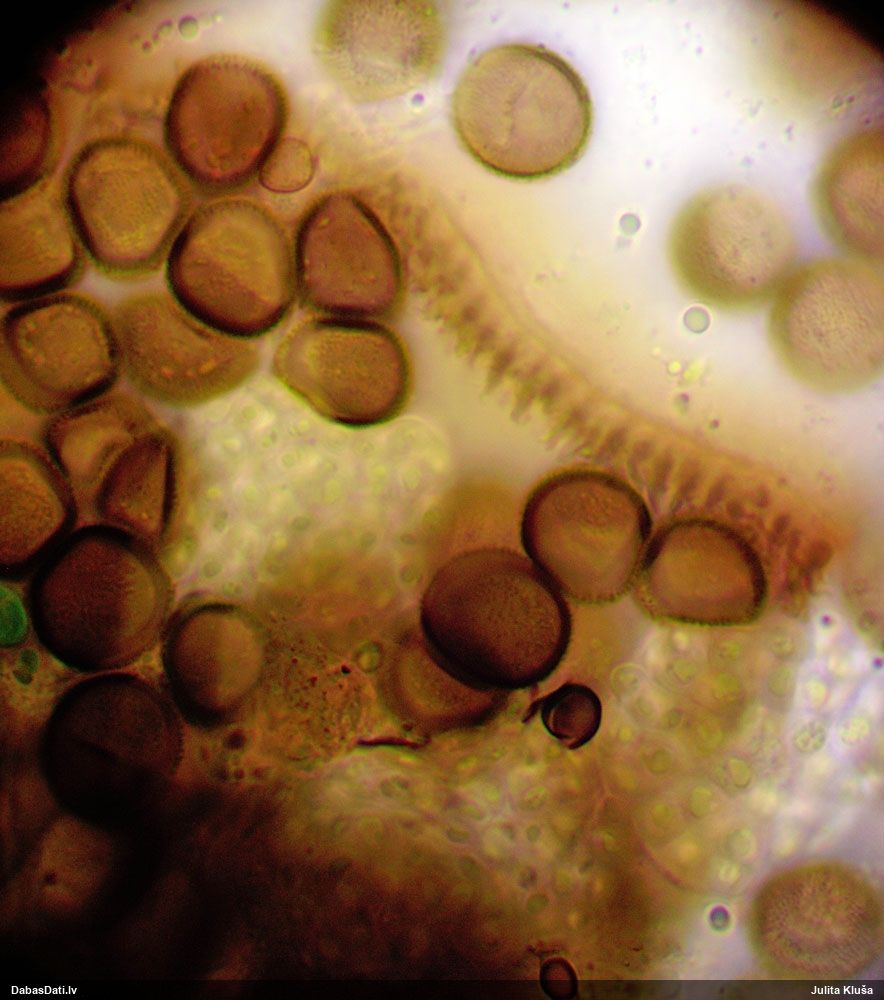 Sporas izskatās ļoti gaišas, varbūt nenobriedušas. Es laikam pēc kāda laiciņa mēģinātu vēlreiz mikroskopēt. Tajā pašā laikā sporu izmēri priekš T.contorta ir pamazi (ja tipiski ir 11-14 mkm, te ir knapi 11 mkm)