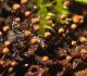 Man pēkšņi radās ideja - vai tur bija nu ļoti mitrs mikroklimats, egle ar melnalksni? Hipotētiski tādas dzeltenas var būt Diachea muscorum. Te bilde ir mazliet līdzīga: https://fr.wikipedia.org/wiki/Fichier:Craterium_muscorum,_Trawscoed,_North_Wales,_Aug_2016_-_Flickr_-_janetgraham84.jpg