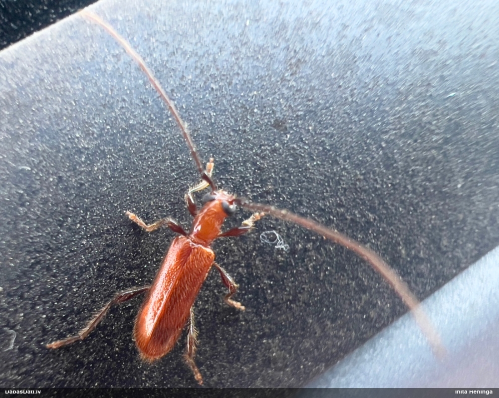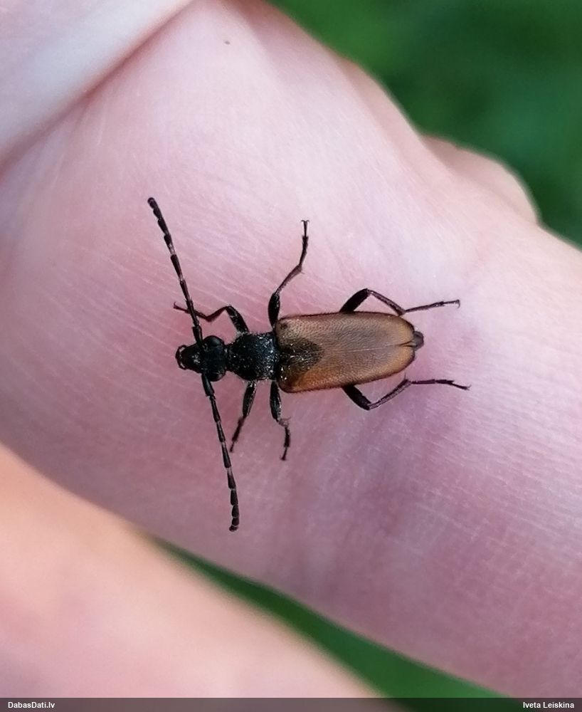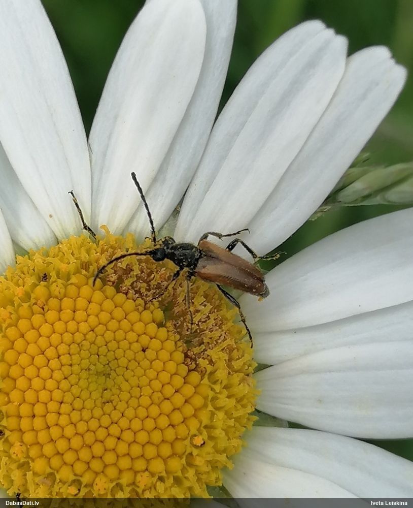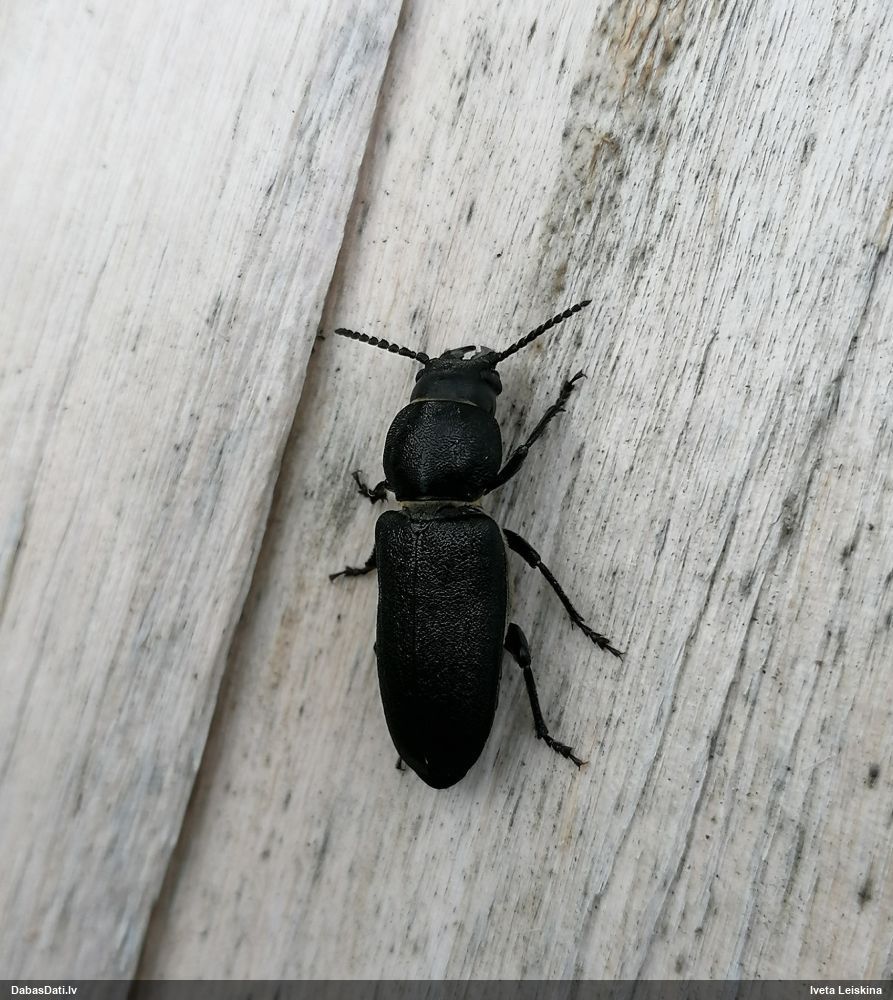 Jāredz tuvāk (kaut vai izkadrēts šis pats attēls) - varbūt tumšā eļļasvabole (Meloe proscarabaeus)