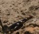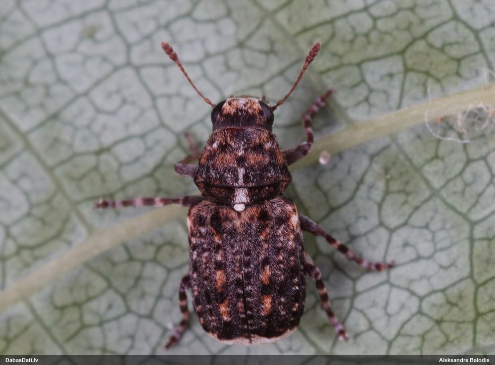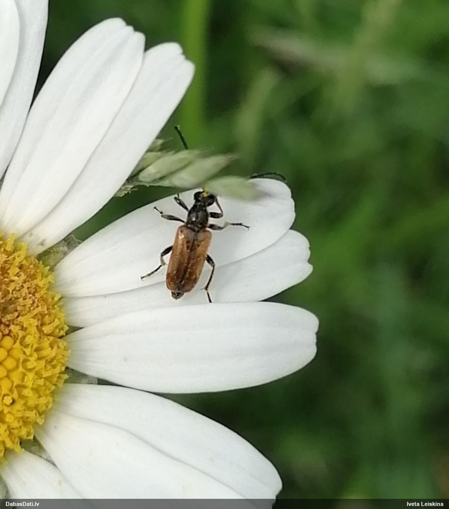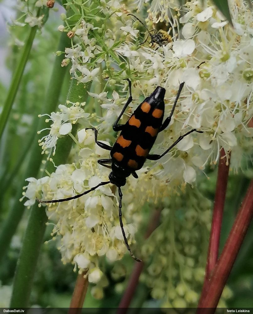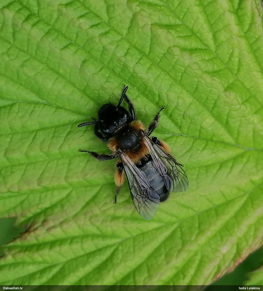 Jāredz tuvāk (kaut vai izkadrēts šis pats attēls) - varbūt tumšā eļļasvabole (Meloe proscarabaeus)