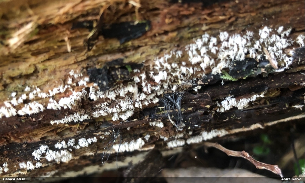 Satrūdējusi kritala mežā, nav dēļi. Iespējams, egle, jauktu koku mežs.