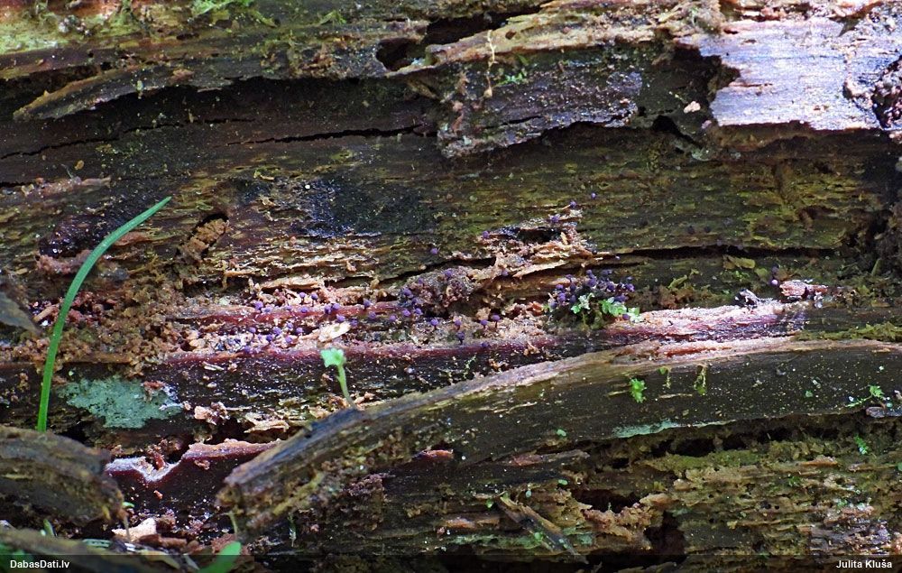 Šobrīd divas versijas - Physarum psittacinum un P.braunianum. Bez paraudziņa te skaidrīzā netiks, bet biotops interesants