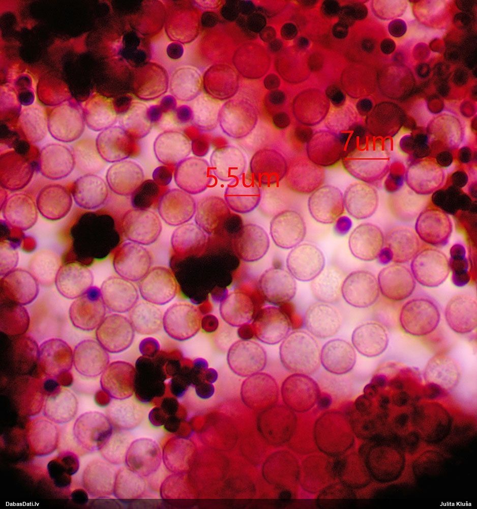Sporas izskatās ļoti gaišas, varbūt nenobriedušas. Es laikam pēc kāda laiciņa mēģinātu vēlreiz mikroskopēt. Tajā pašā laikā sporu izmēri priekš T.contorta ir pamazi (ja tipiski ir 11-14 mkm, te ir knapi 11 mkm)