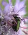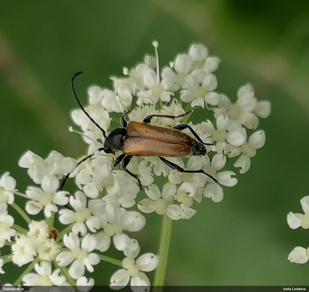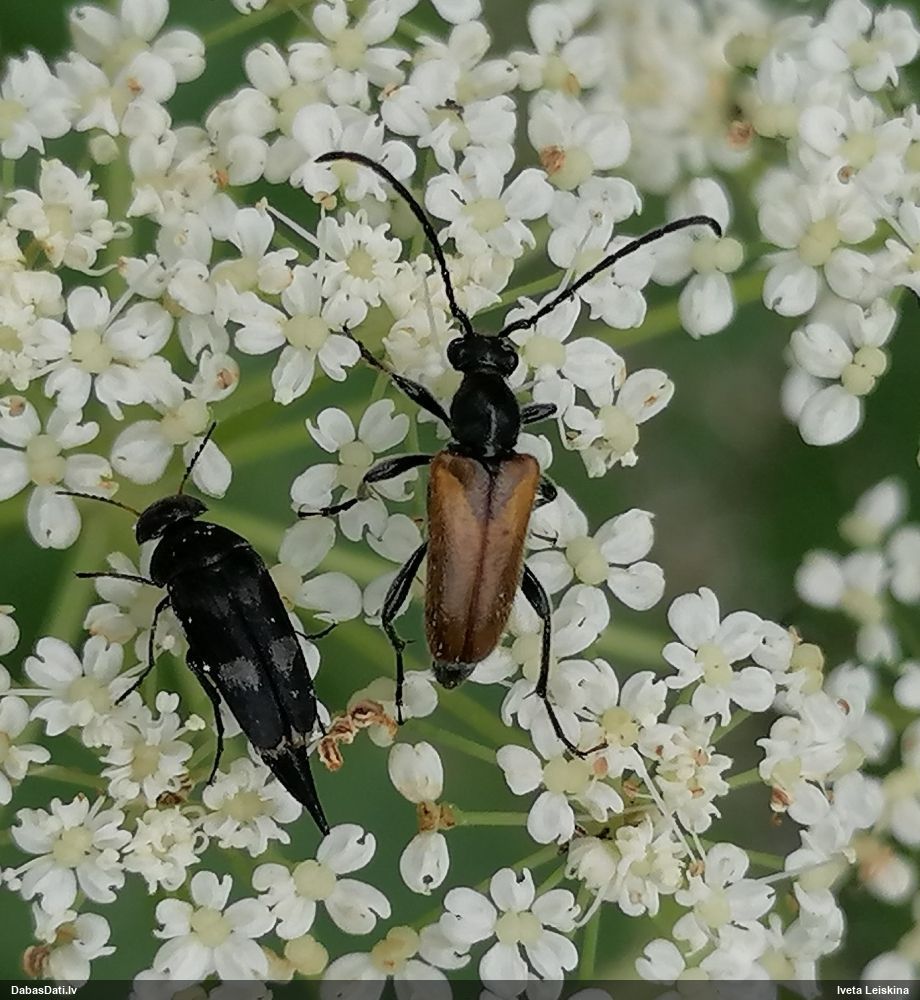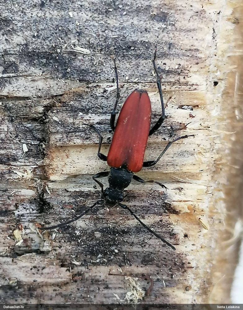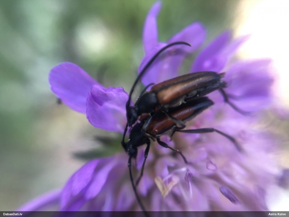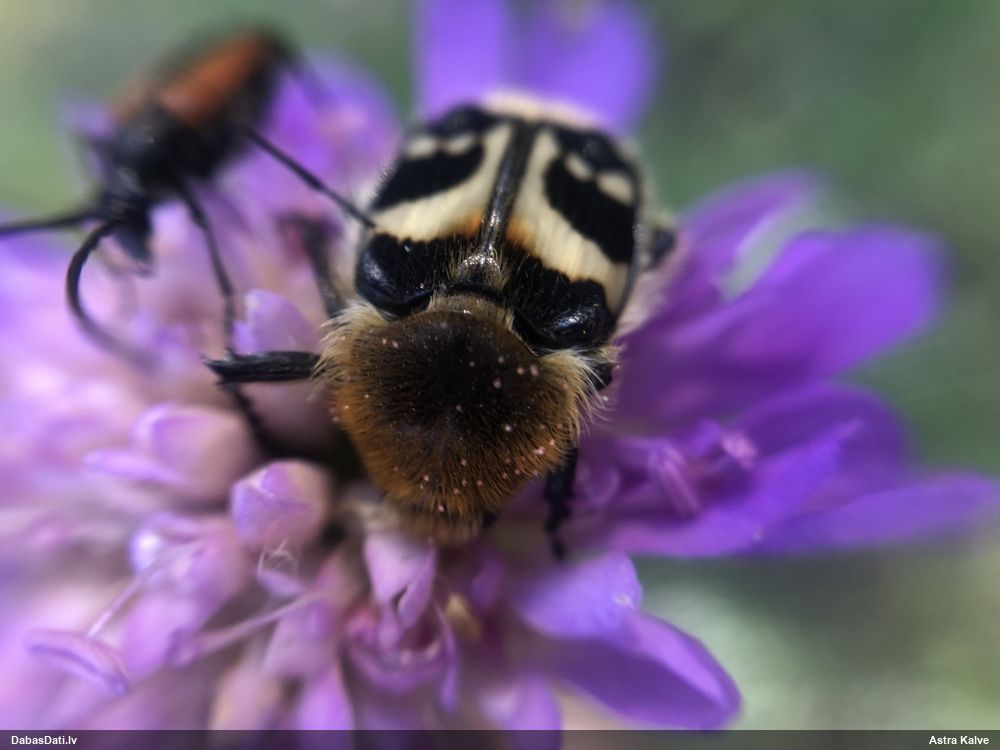 Jāredz tuvāk (kaut vai izkadrēts šis pats attēls) - varbūt tumšā eļļasvabole (Meloe proscarabaeus)
