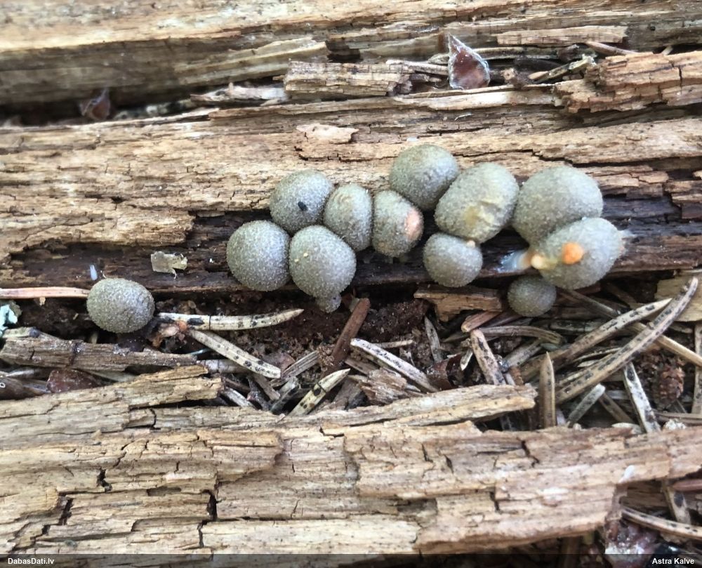 Cukurīte (Didymium) vai pumpurīte (Physarum)? Man galviņas virsma šķiet vairāk kā cukurītei, bet uz sēnes .. pieredze ar pumpurītēm.