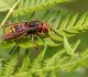 Jāredz tuvāk (kaut vai izkadrēts šis pats attēls) - varbūt tumšā eļļasvabole (Meloe proscarabaeus)