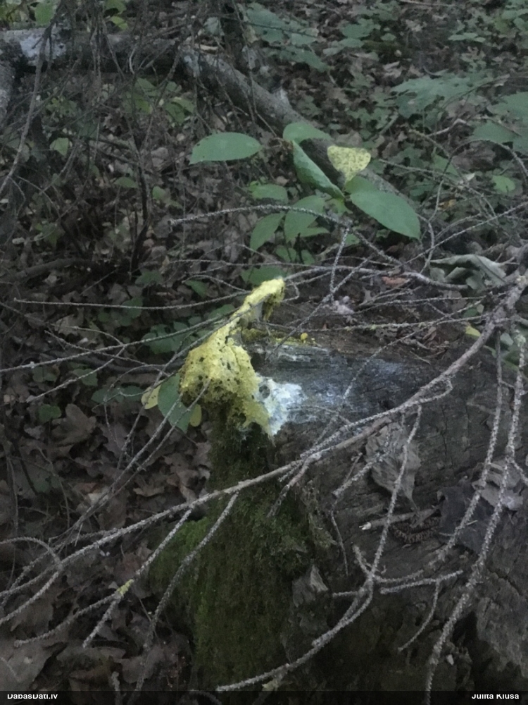 Šobrīd divas versijas - Physarum psittacinum un P.braunianum. Bez paraudziņa te skaidrīzā netiks, bet biotops interesants