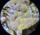 Man pēkšņi radās ideja - vai tur bija nu ļoti mitrs mikroklimats, egle ar melnalksni? Hipotētiski tādas dzeltenas var būt Diachea muscorum. Te bilde ir mazliet līdzīga: https://fr.wikipedia.org/wiki/Fichier:Craterium_muscorum,_Trawscoed,_North_Wales,_Aug_2016_-_Flickr_-_janetgraham84.jpg