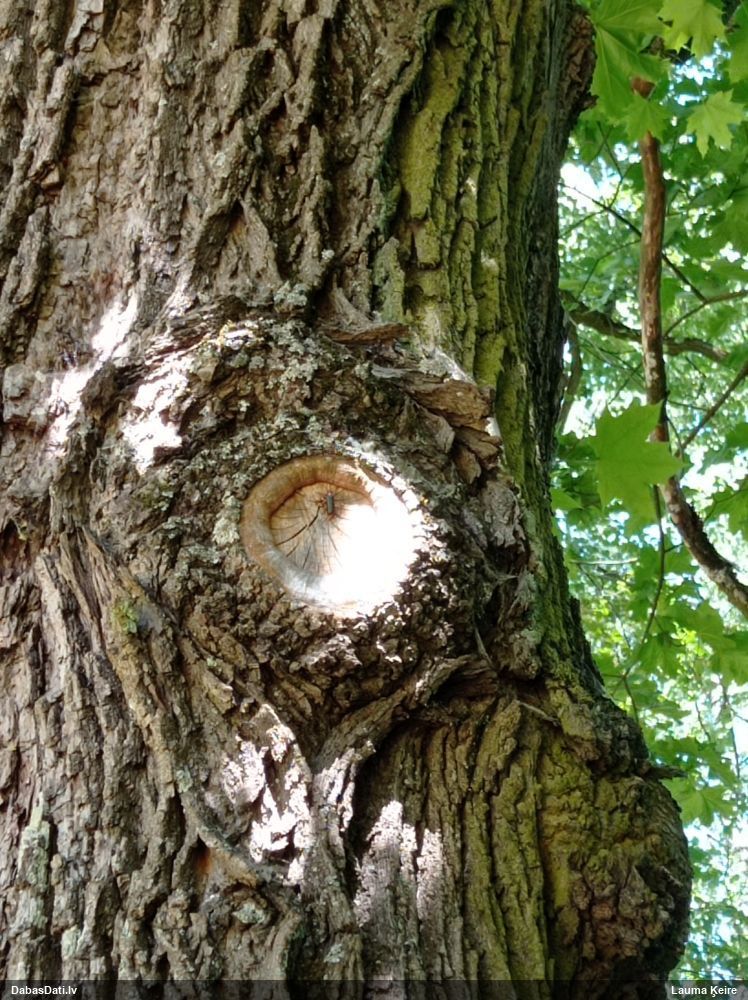 Mežiņā pie mājām, kļavā ieurbtā caurumā (sulām).