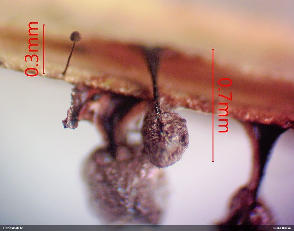 Šo vēlāk būs jāpapēta vēl. Vienā kompaktā paraudziņā, bija arī tipiskais staipīgais režģīša kapilīcijs, bet sporas kaut kāds hibrīds ar smalku tīkliņu, ko nevienai sugai pagaidām nevaru piesaistīt. Varbūt arī ir hibrīds.