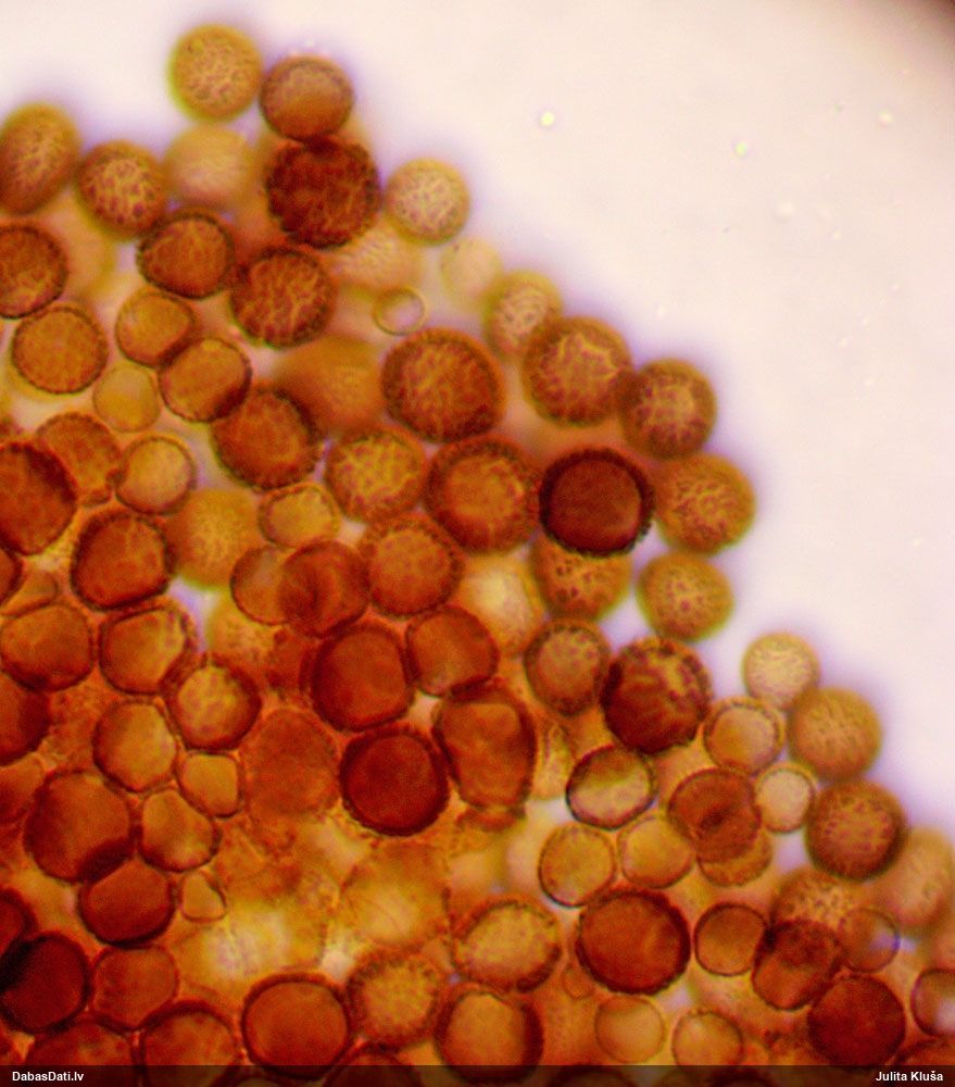 Sporas izskatās ļoti gaišas, varbūt nenobriedušas. Es laikam pēc kāda laiciņa mēģinātu vēlreiz mikroskopēt. Tajā pašā laikā sporu izmēri priekš T.contorta ir pamazi (ja tipiski ir 11-14 mkm, te ir knapi 11 mkm)