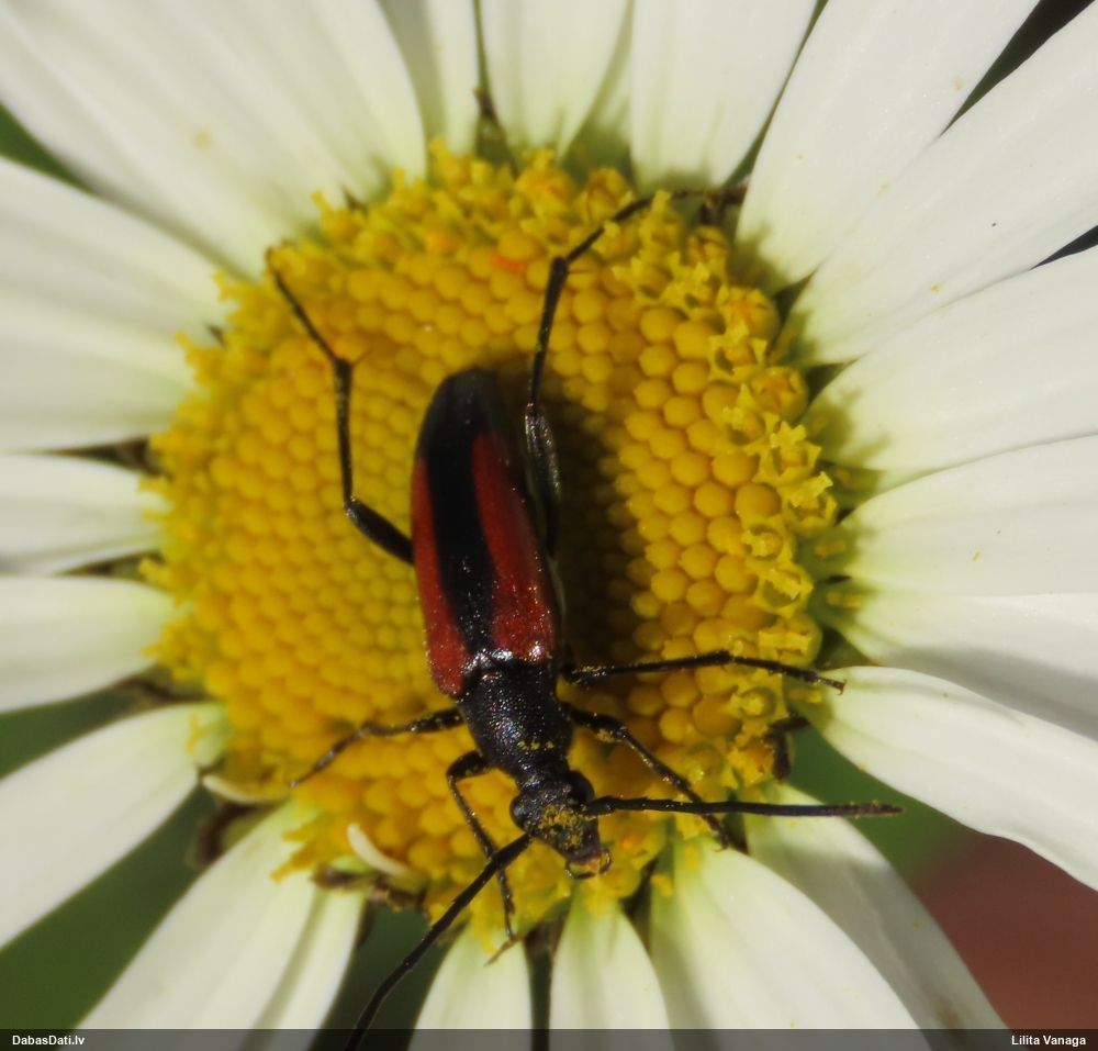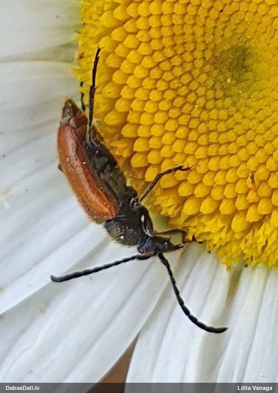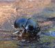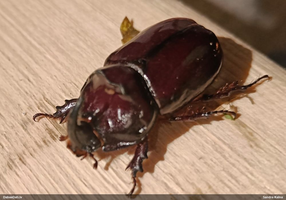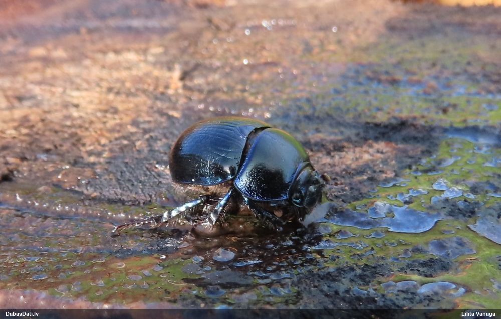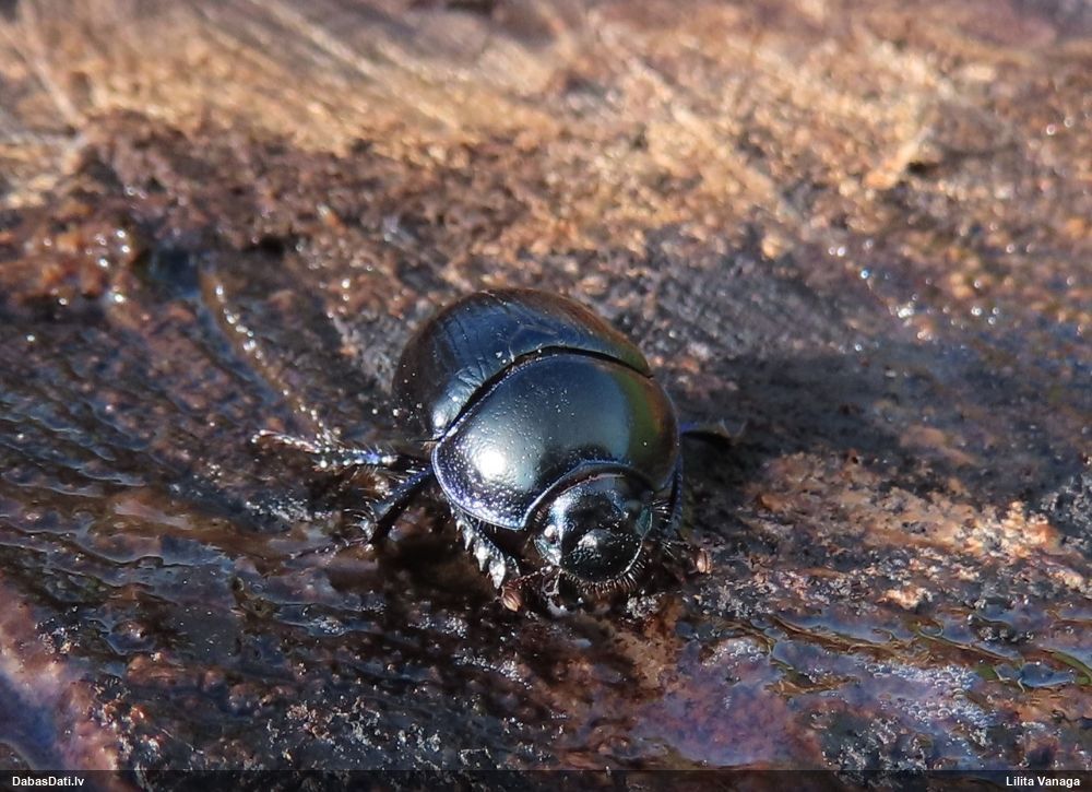 Jāredz tuvāk (kaut vai izkadrēts šis pats attēls) - varbūt tumšā eļļasvabole (Meloe proscarabaeus)