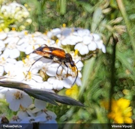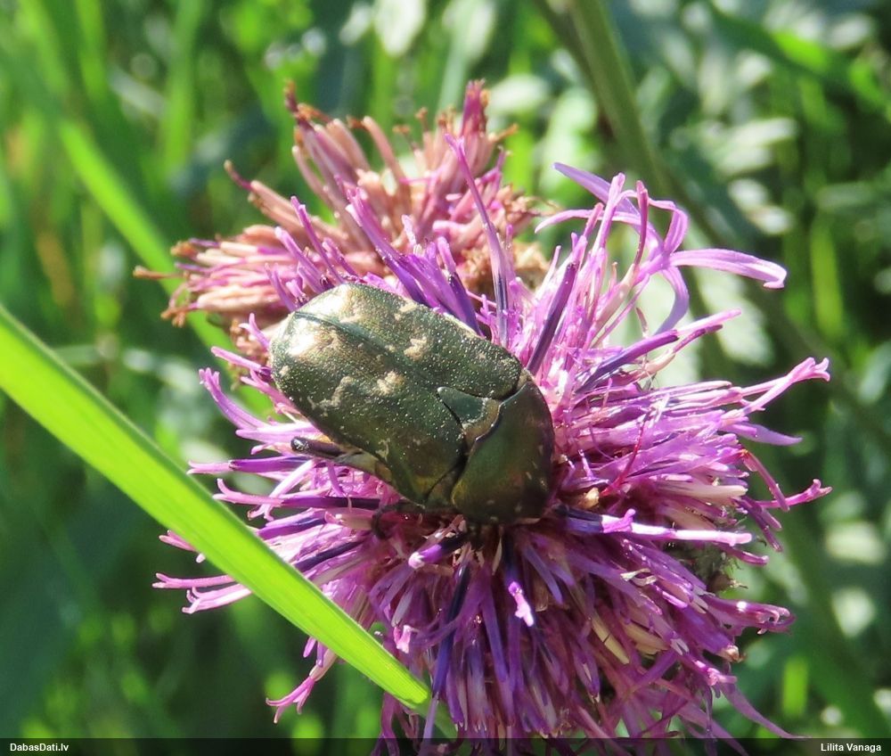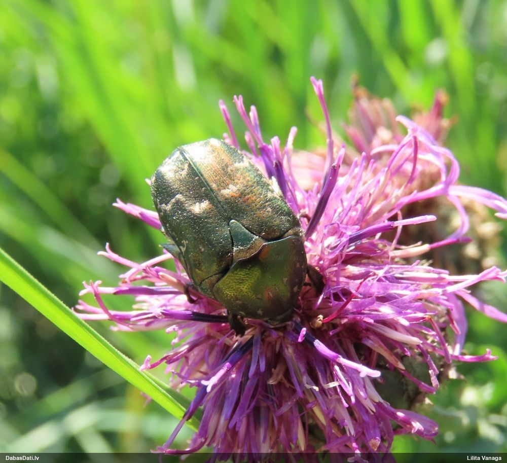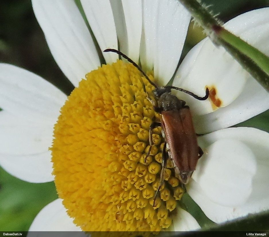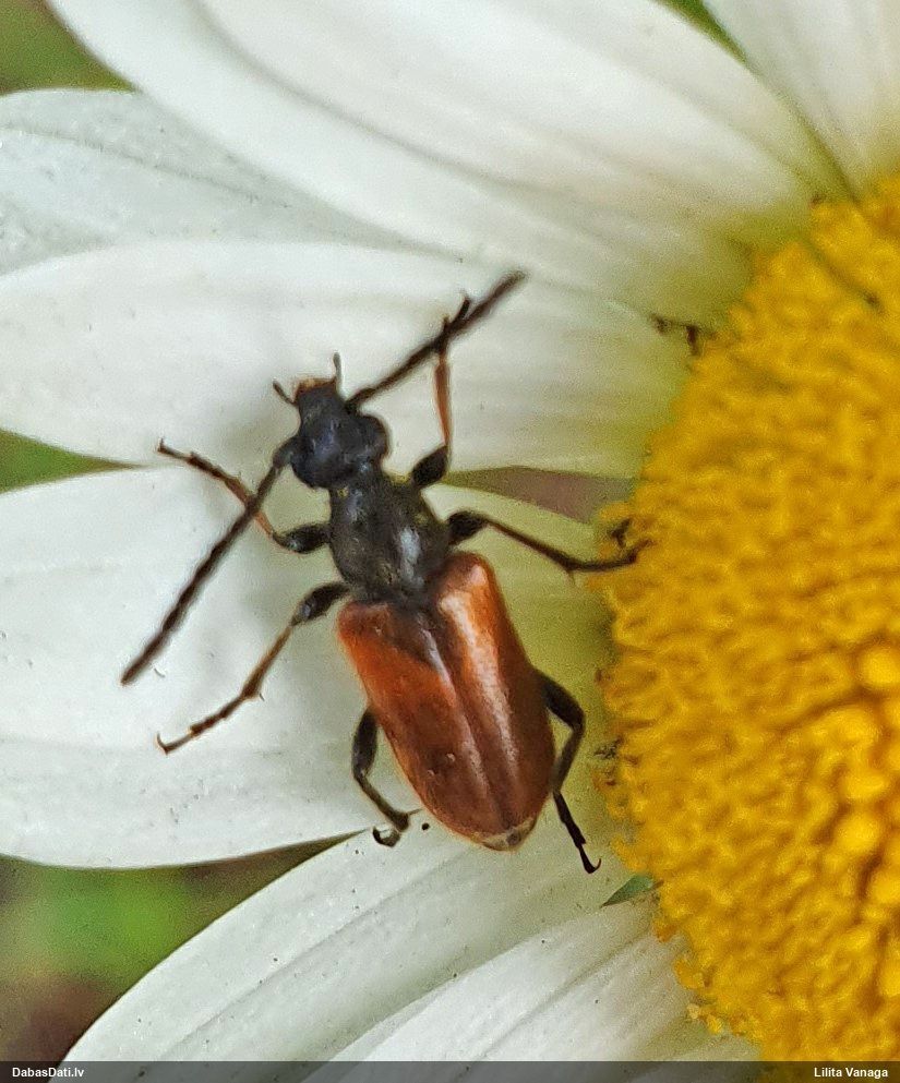 Jāredz tuvāk (kaut vai izkadrēts šis pats attēls) - varbūt tumšā eļļasvabole (Meloe proscarabaeus)