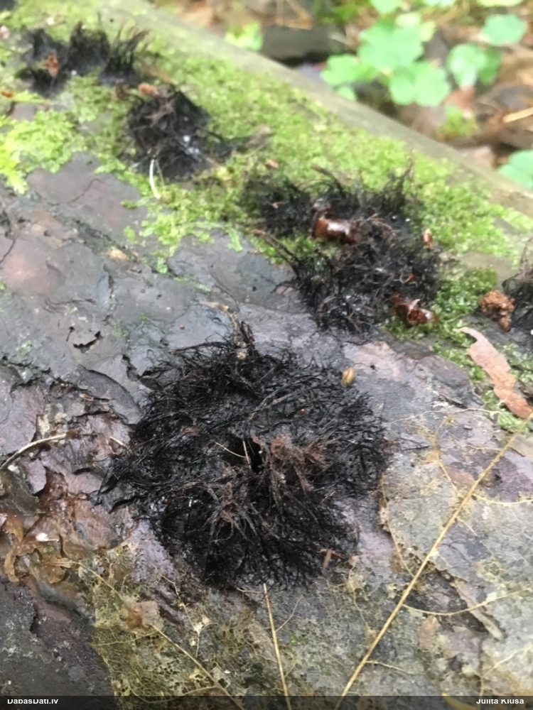 Satrūdējusi kritala mežā, nav dēļi. Iespējams, egle, jauktu koku mežs.