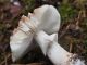 Es teiktu, ka Pleurotus cornucopiae: Cepurītes krāsa tik gaiši bēša nav pat vairākkārt salušām P.osteatus, bet šīs ir svaigi izaugušas. Lapiņas izteikti vērstas uz leju un veido kātiņa apakšā neregulāru rakstu, ko sauc par "anastomozes" tīklu.