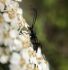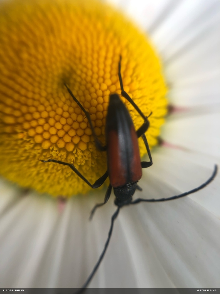 Jāredz tuvāk (kaut vai izkadrēts šis pats attēls) - varbūt tumšā eļļasvabole (Meloe proscarabaeus)