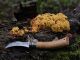 Satrūdējusi kritala mežā, nav dēļi. Iespējams, egle, jauktu koku mežs.