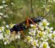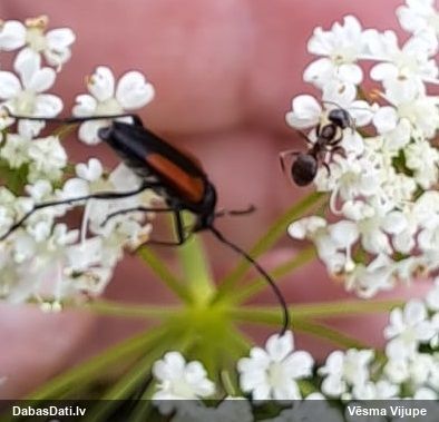 Jāredz tuvāk (kaut vai izkadrēts šis pats attēls) - varbūt tumšā eļļasvabole (Meloe proscarabaeus)