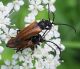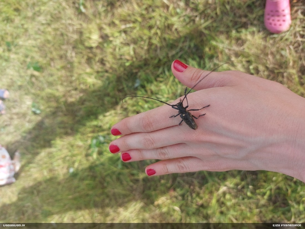 Jāredz tuvāk (kaut vai izkadrēts šis pats attēls) - varbūt tumšā eļļasvabole (Meloe proscarabaeus)