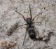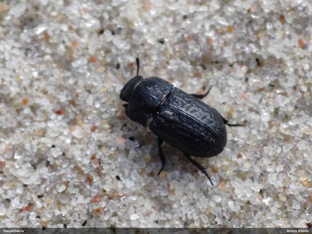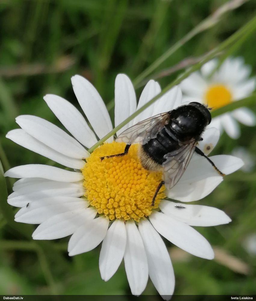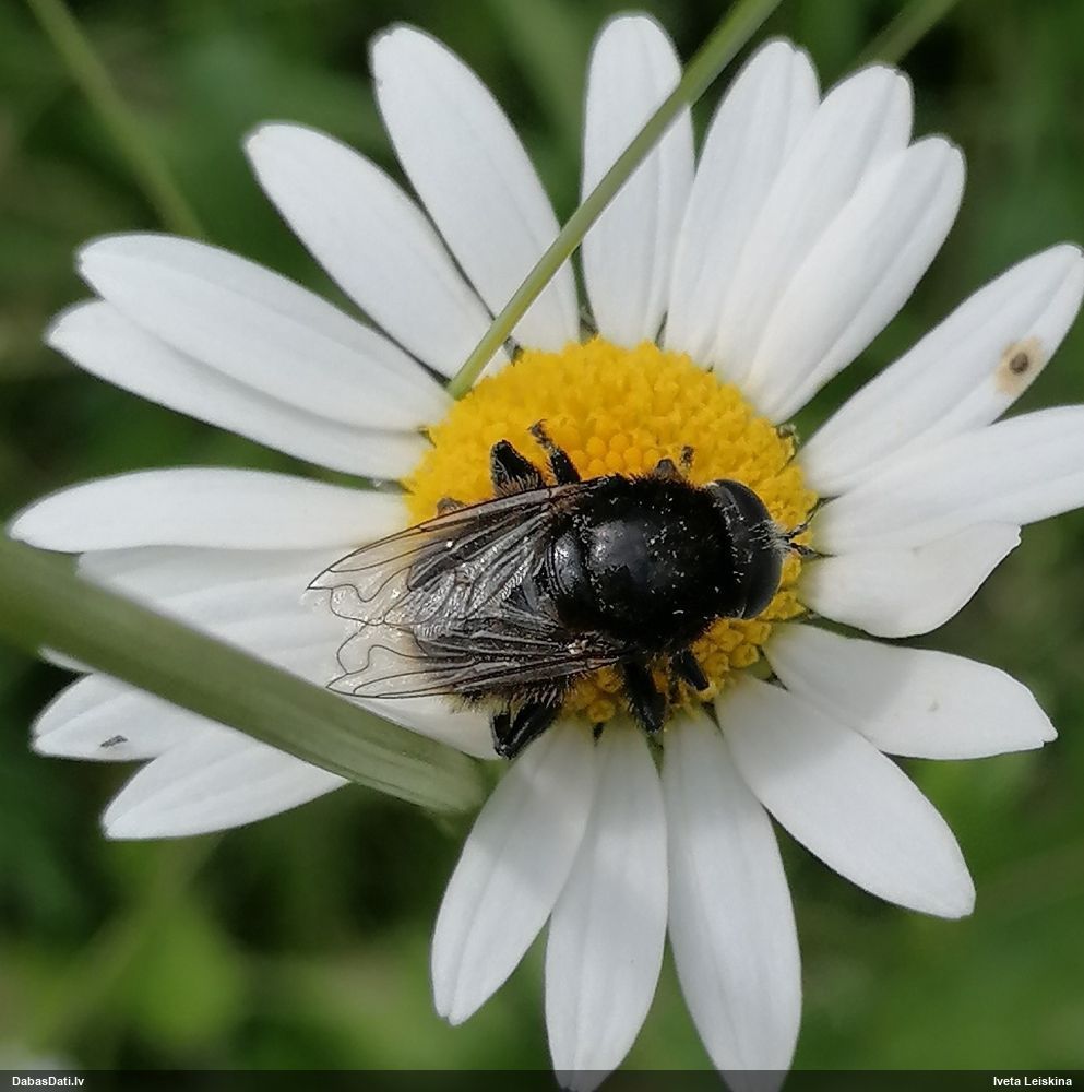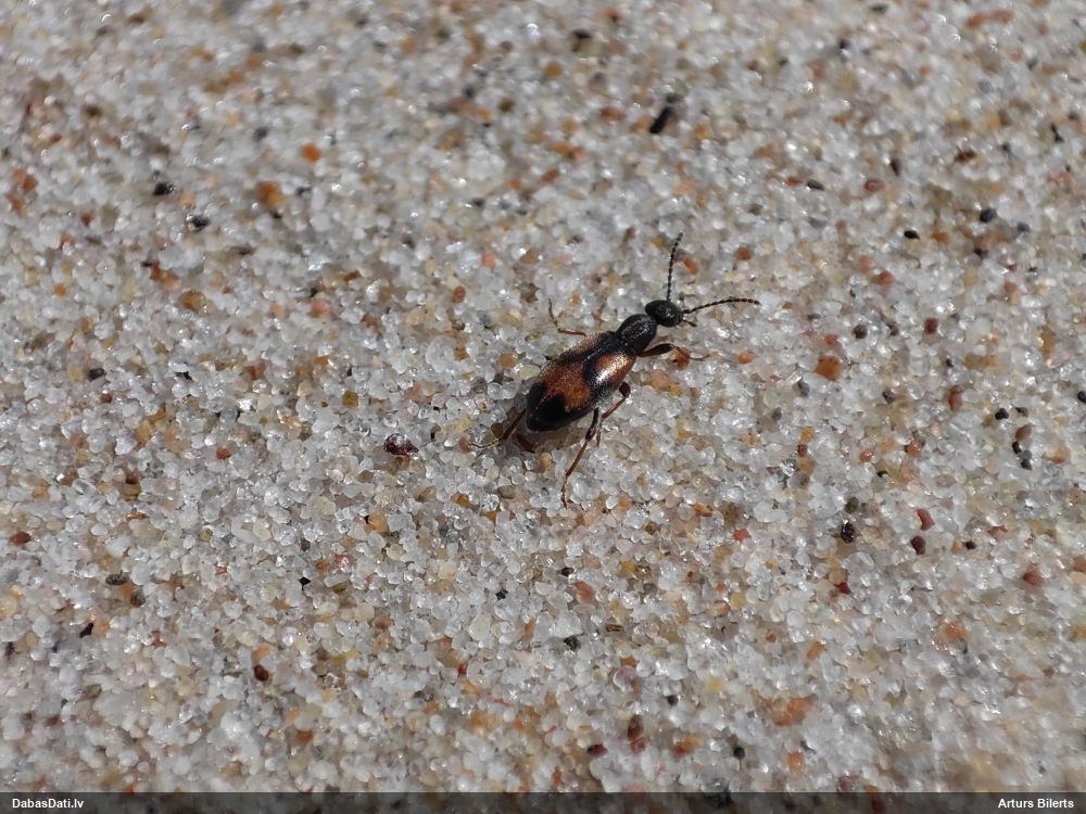 Jāredz tuvāk (kaut vai izkadrēts šis pats attēls) - varbūt tumšā eļļasvabole (Meloe proscarabaeus)