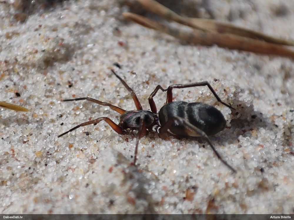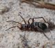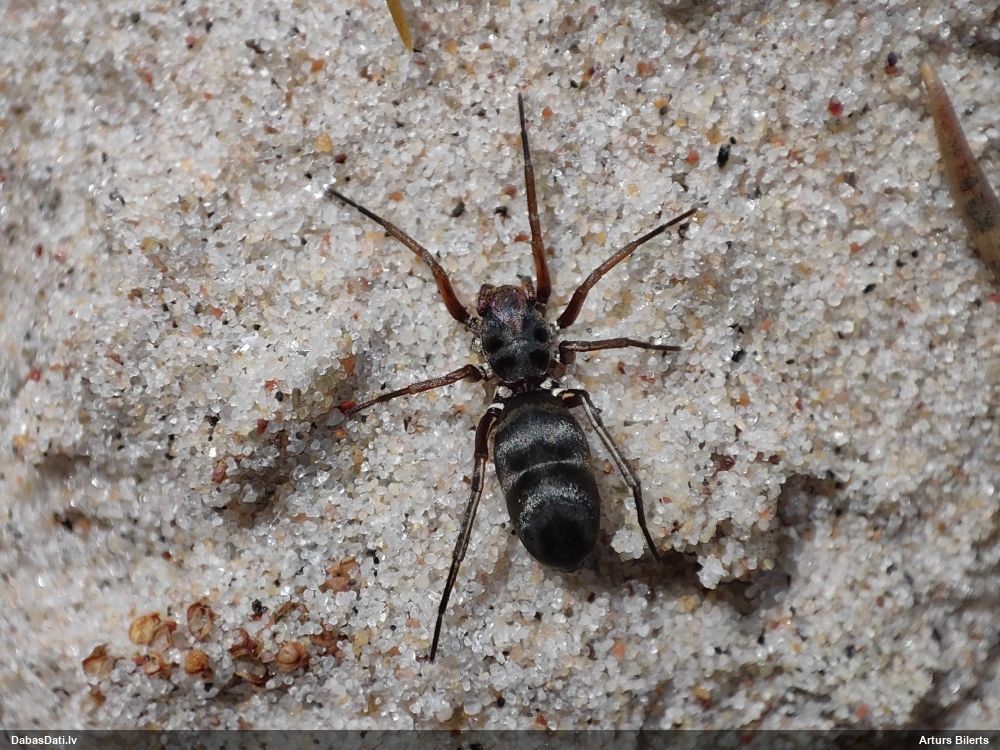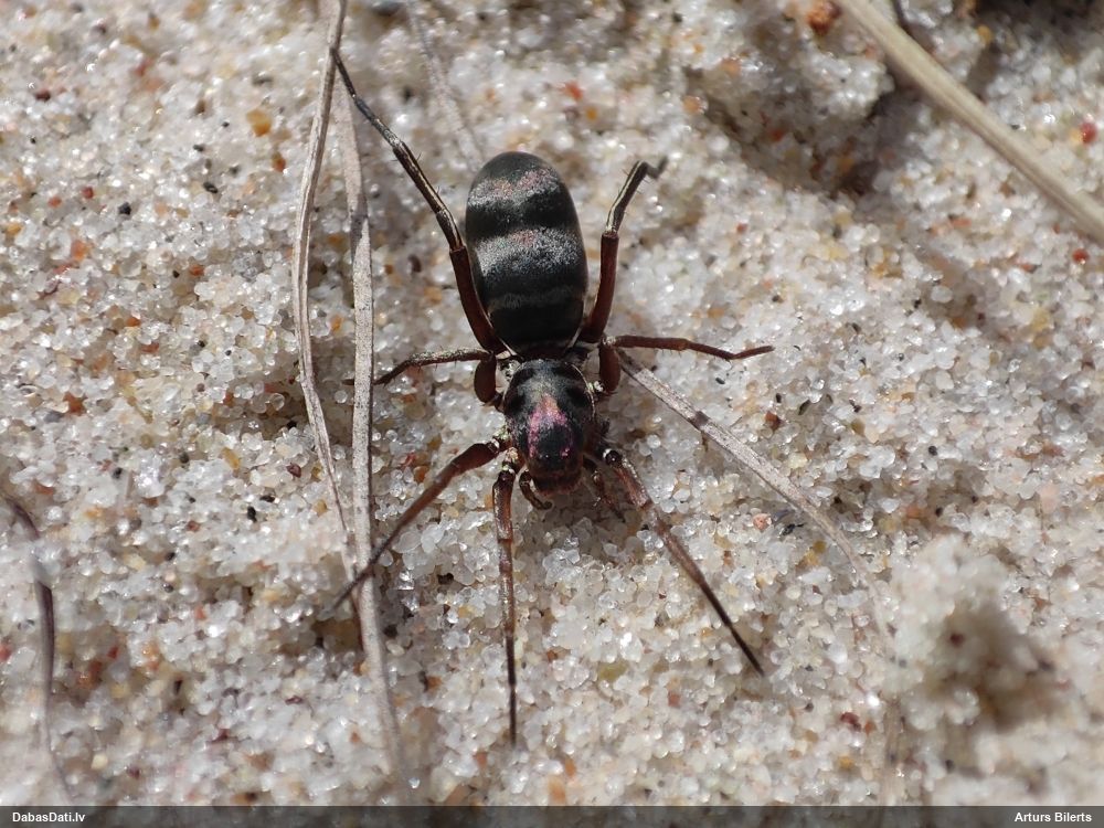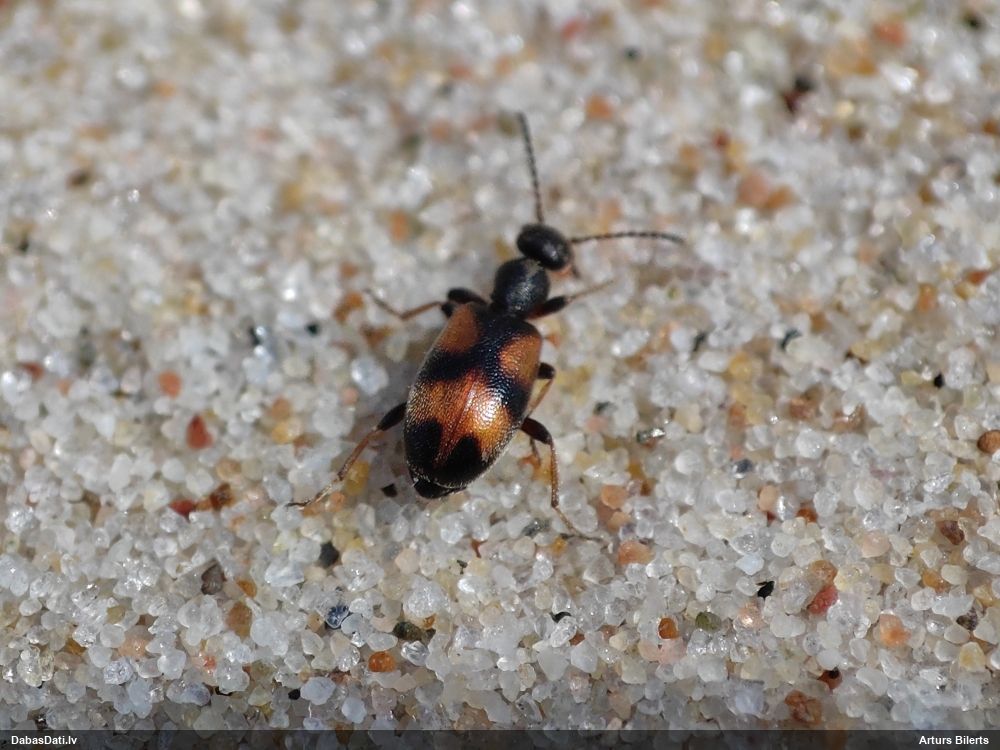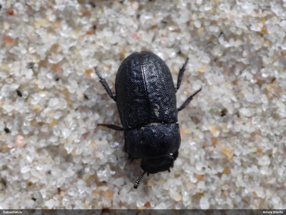 Jāredz tuvāk (kaut vai izkadrēts šis pats attēls) - varbūt tumšā eļļasvabole (Meloe proscarabaeus)