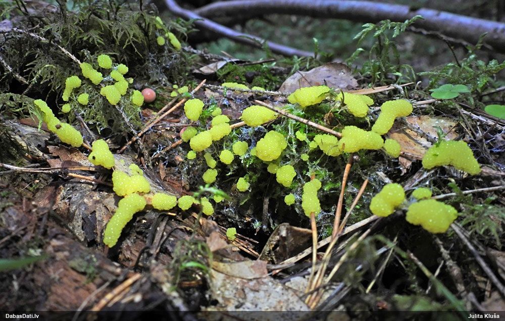 Šobrīd divas versijas - Physarum psittacinum un P.braunianum. Bez paraudziņa te skaidrīzā netiks, bet biotops interesants