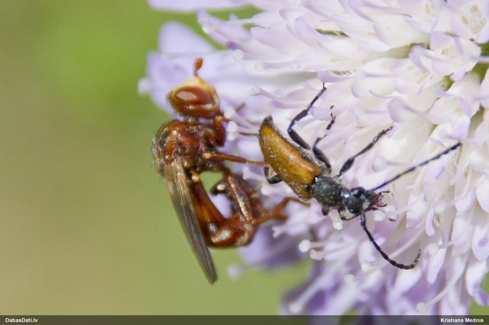 Nu jā, 3. attēlā var saskatīt galvas priekšā arī tādu kā 'āmurveida' izaugumu, kas raksturīgs Xylophagus. Kāpuri arī dzīvo zem mizas - bieži tieši zem nokaltušu priežu mizas.