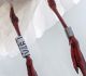 zaļš un zils augšā, uz kreisās kājas abiem baltajiem gredzeniem bij kaut kāda kaslīte.