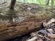 Satrūdējusi kritala mežā, nav dēļi. Iespējams, egle, jauktu koku mežs.