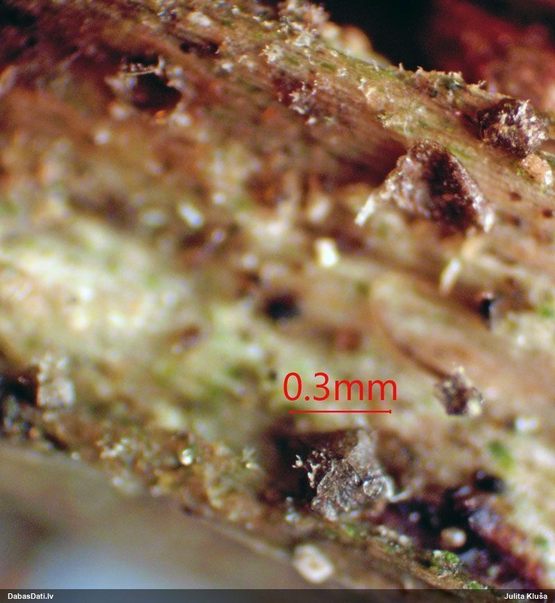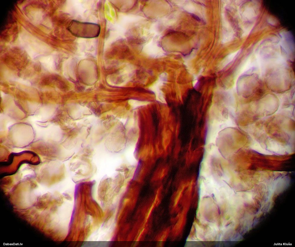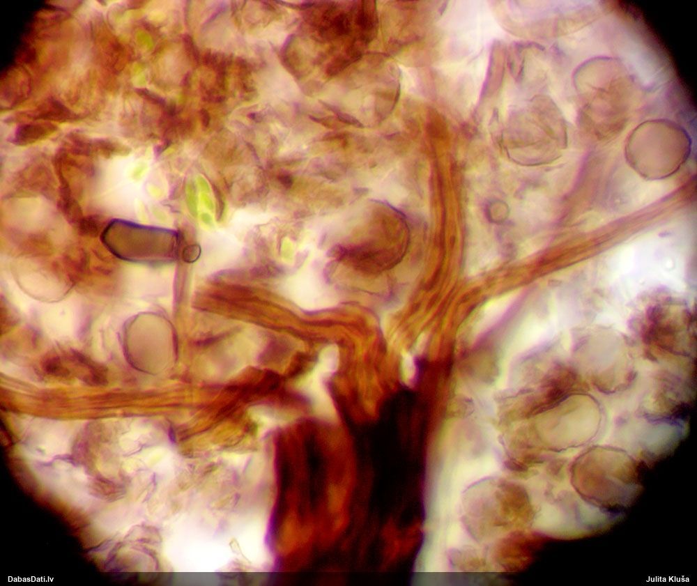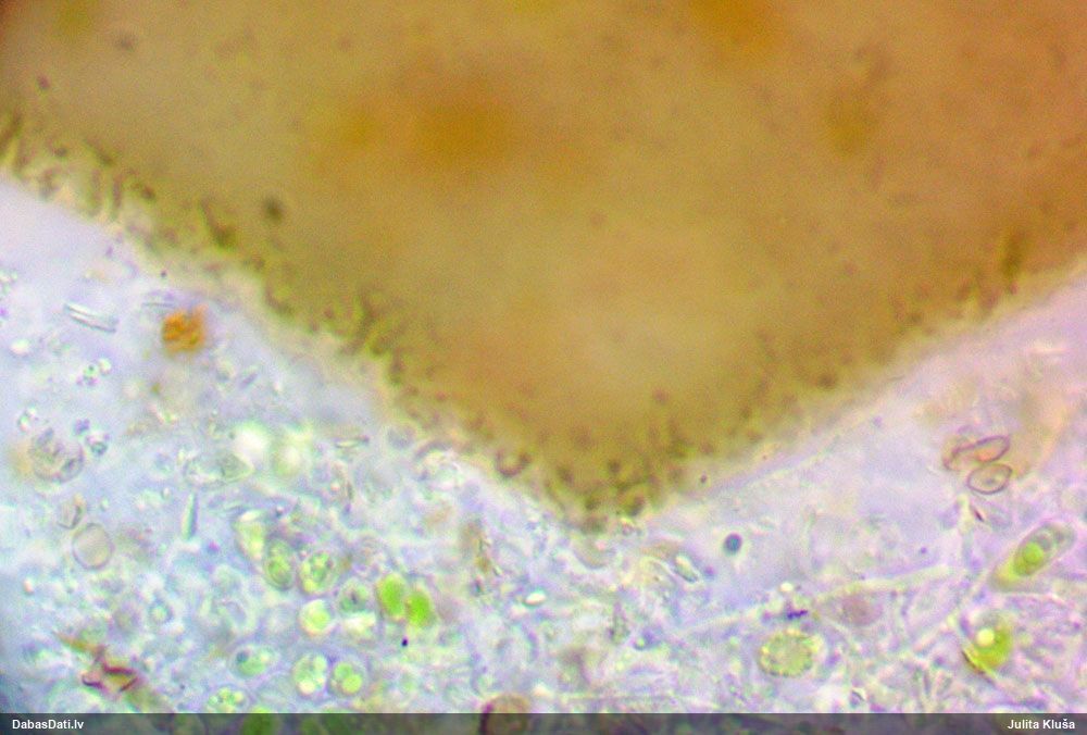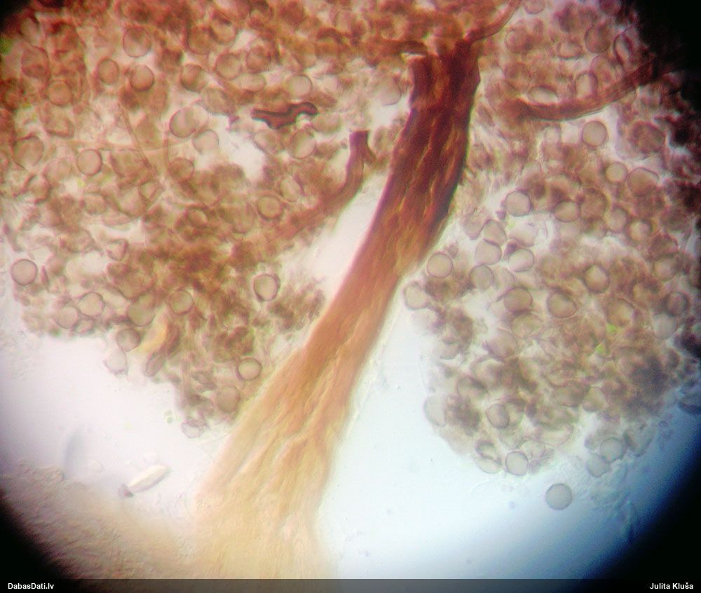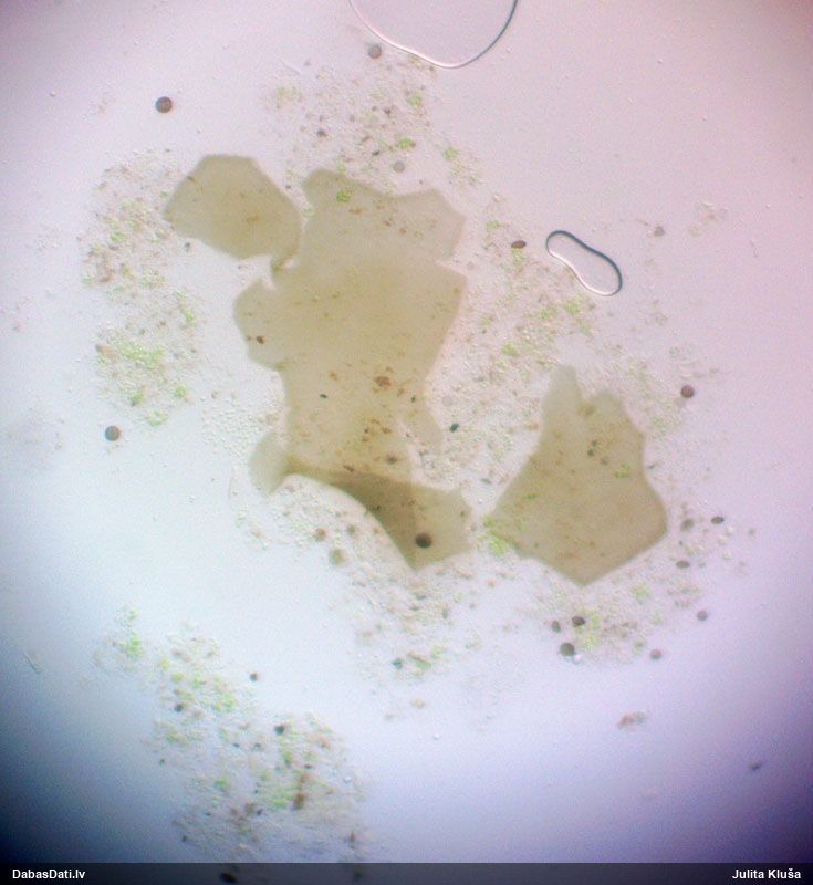 Sporas izskatās ļoti gaišas, varbūt nenobriedušas. Es laikam pēc kāda laiciņa mēģinātu vēlreiz mikroskopēt. Tajā pašā laikā sporu izmēri priekš T.contorta ir pamazi (ja tipiski ir 11-14 mkm, te ir knapi 11 mkm)