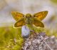 Man pēkšņi radās ideja - vai tur bija nu ļoti mitrs mikroklimats, egle ar melnalksni? Hipotētiski tādas dzeltenas var būt Diachea muscorum. Te bilde ir mazliet līdzīga: https://fr.wikipedia.org/wiki/Fichier:Craterium_muscorum,_Trawscoed,_North_Wales,_Aug_2016_-_Flickr_-_janetgraham84.jpg