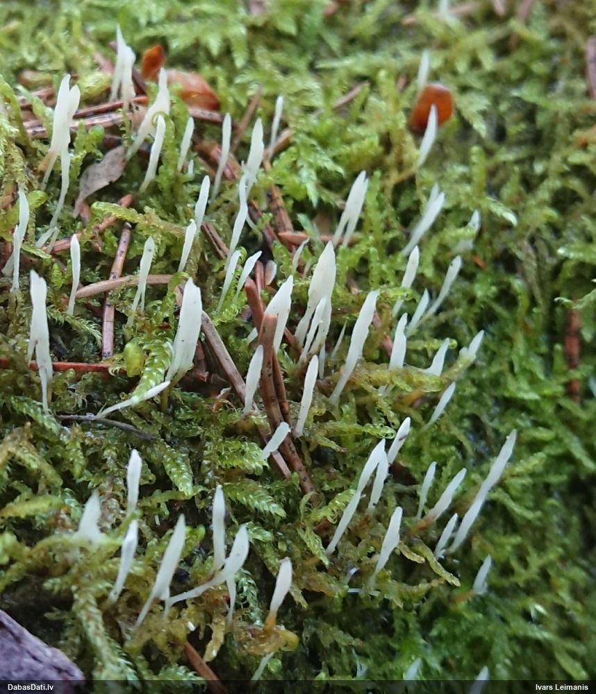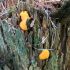 Man pēkšņi radās ideja - vai tur bija nu ļoti mitrs mikroklimats, egle ar melnalksni? Hipotētiski tādas dzeltenas var būt Diachea muscorum. Te bilde ir mazliet līdzīga: https://fr.wikipedia.org/wiki/Fichier:Craterium_muscorum,_Trawscoed,_North_Wales,_Aug_2016_-_Flickr_-_janetgraham84.jpg