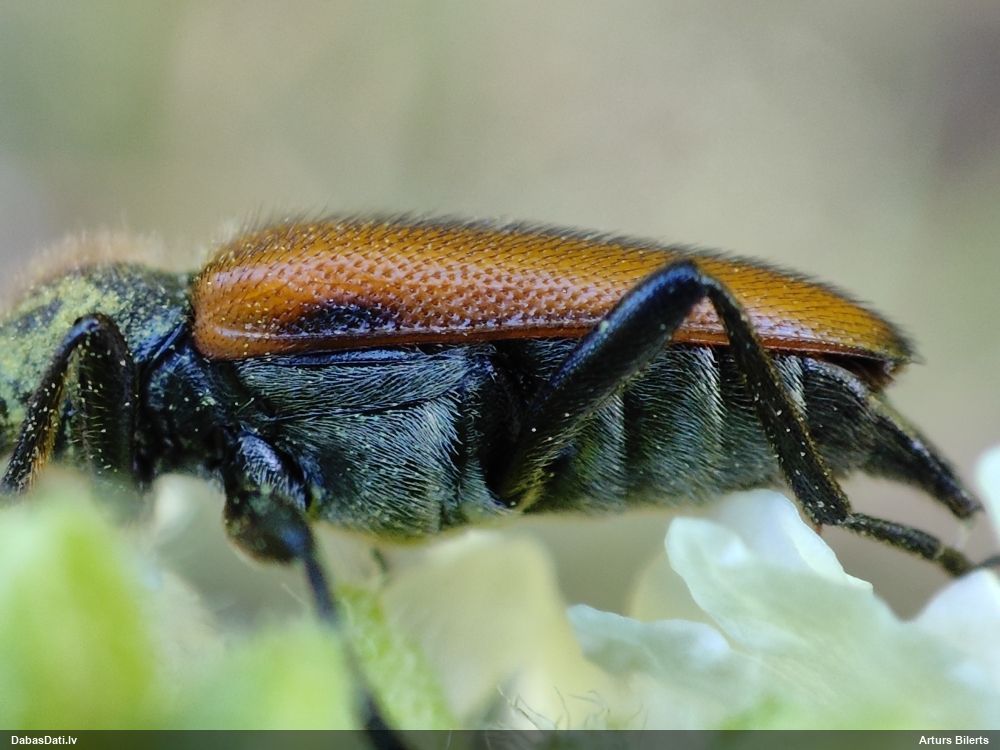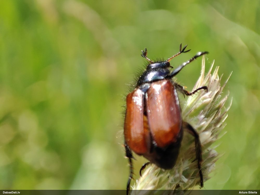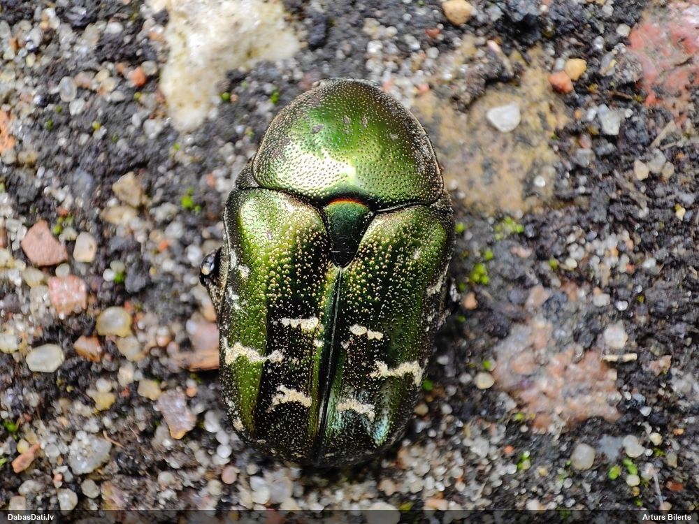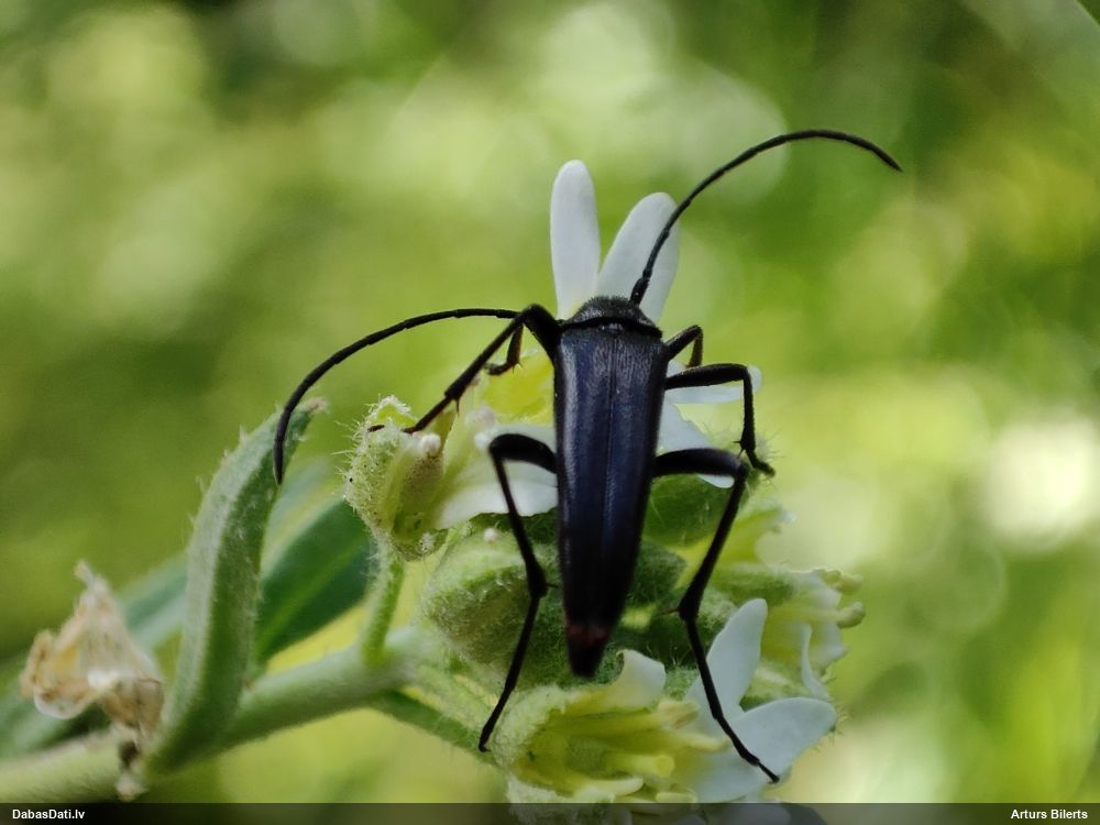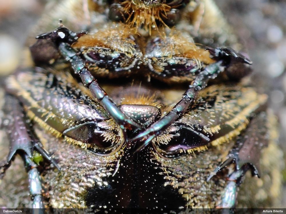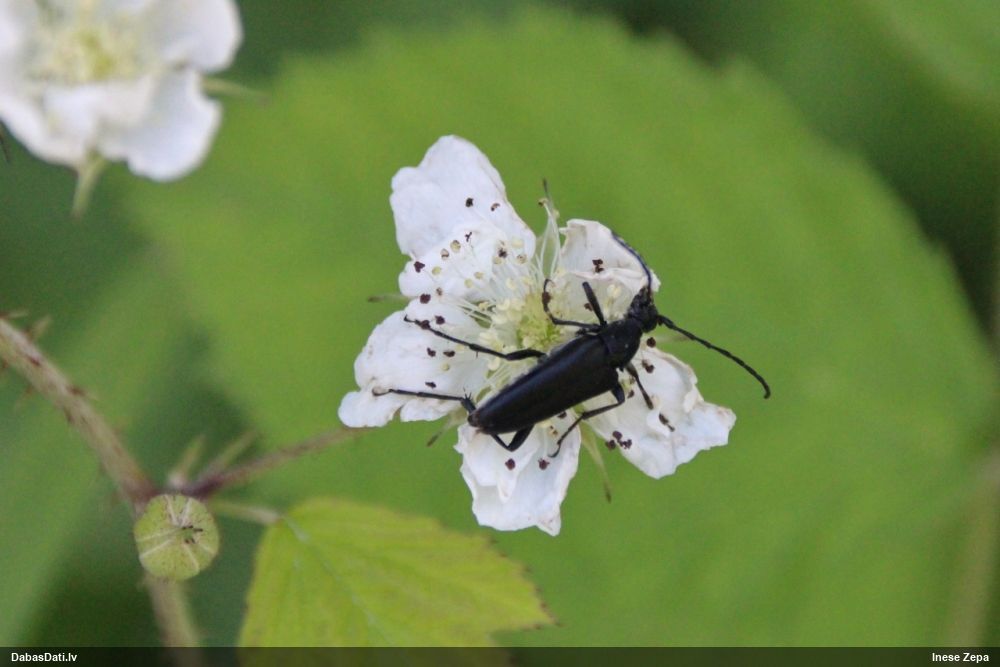 Jāredz tuvāk (kaut vai izkadrēts šis pats attēls) - varbūt tumšā eļļasvabole (Meloe proscarabaeus)