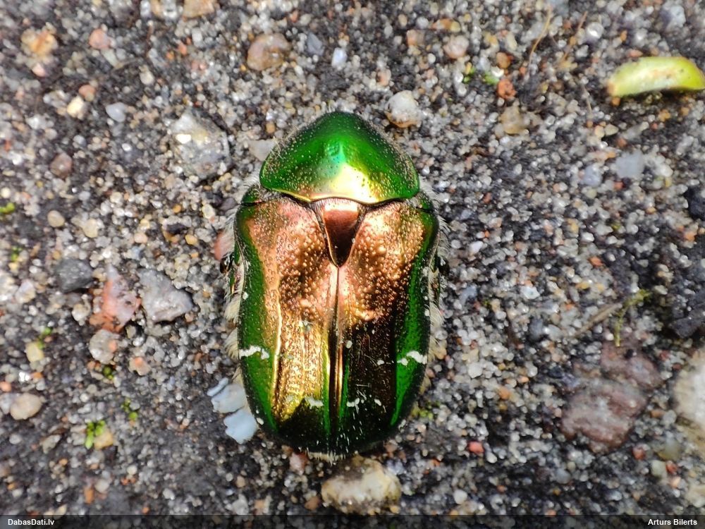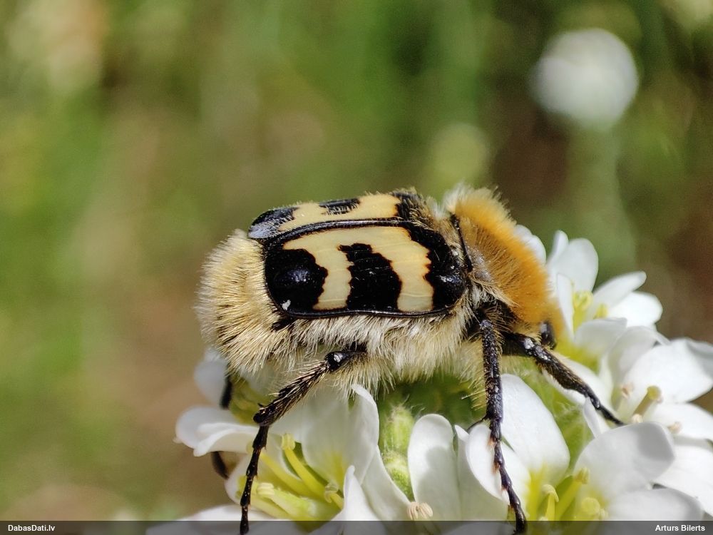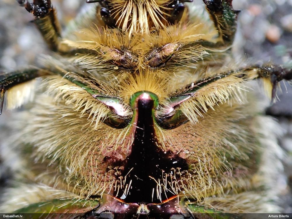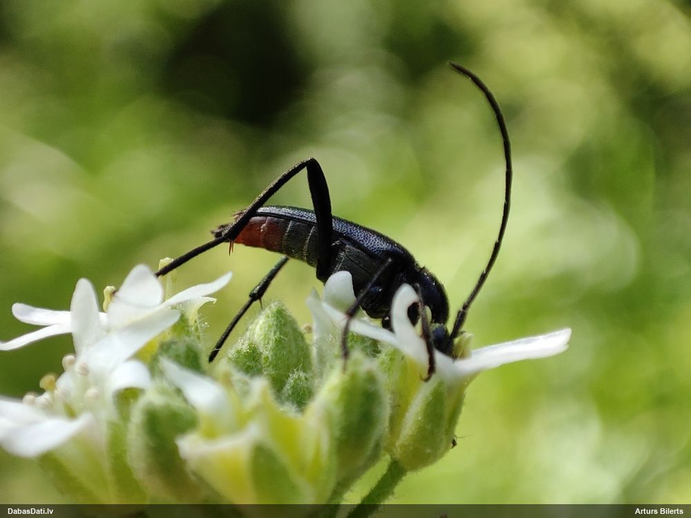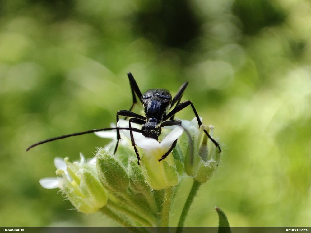 Jāredz tuvāk (kaut vai izkadrēts šis pats attēls) - varbūt tumšā eļļasvabole (Meloe proscarabaeus)