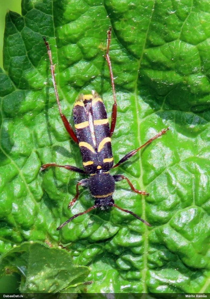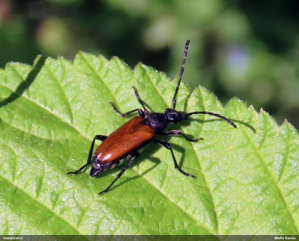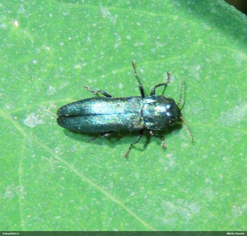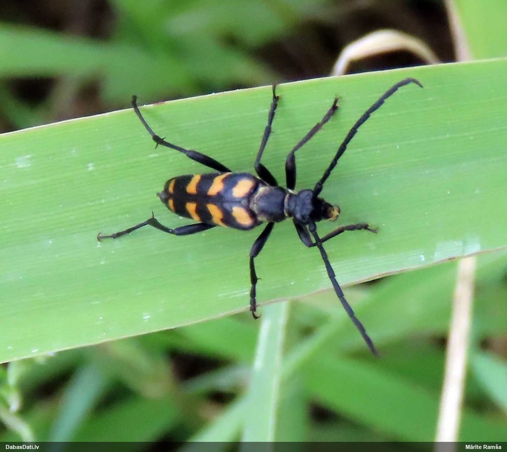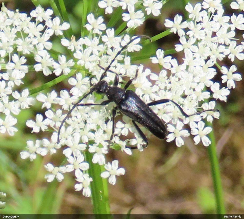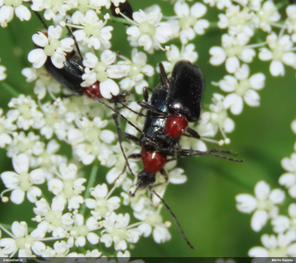 Jāredz tuvāk (kaut vai izkadrēts šis pats attēls) - varbūt tumšā eļļasvabole (Meloe proscarabaeus)