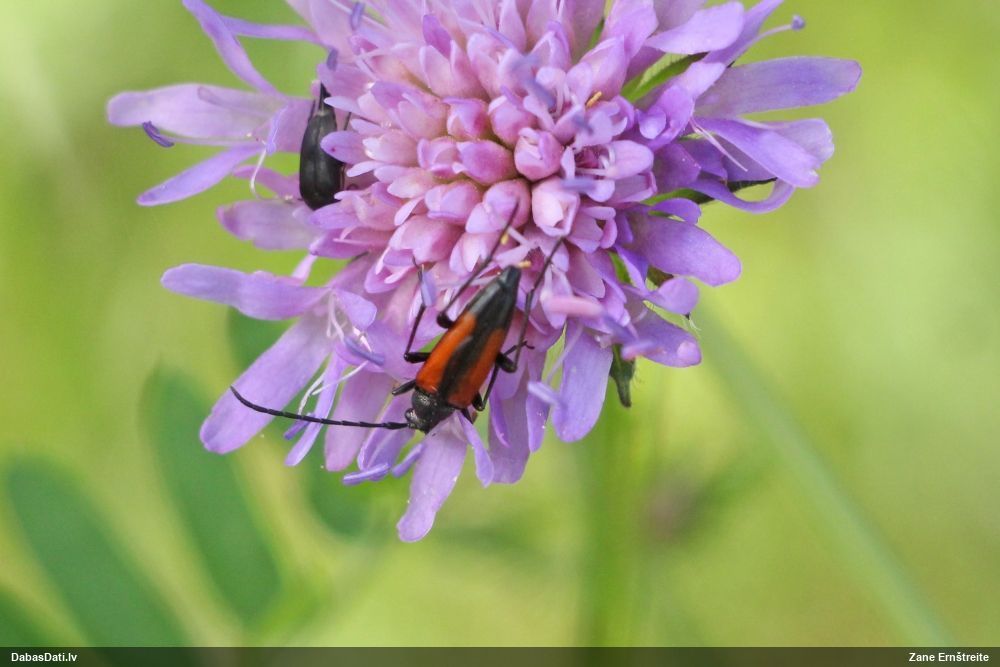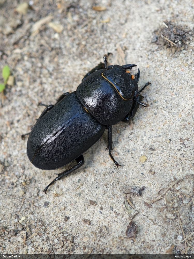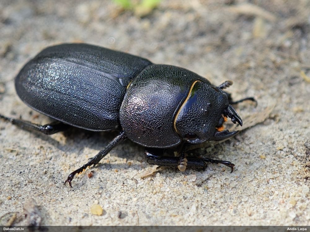 Jāredz tuvāk (kaut vai izkadrēts šis pats attēls) - varbūt tumšā eļļasvabole (Meloe proscarabaeus)